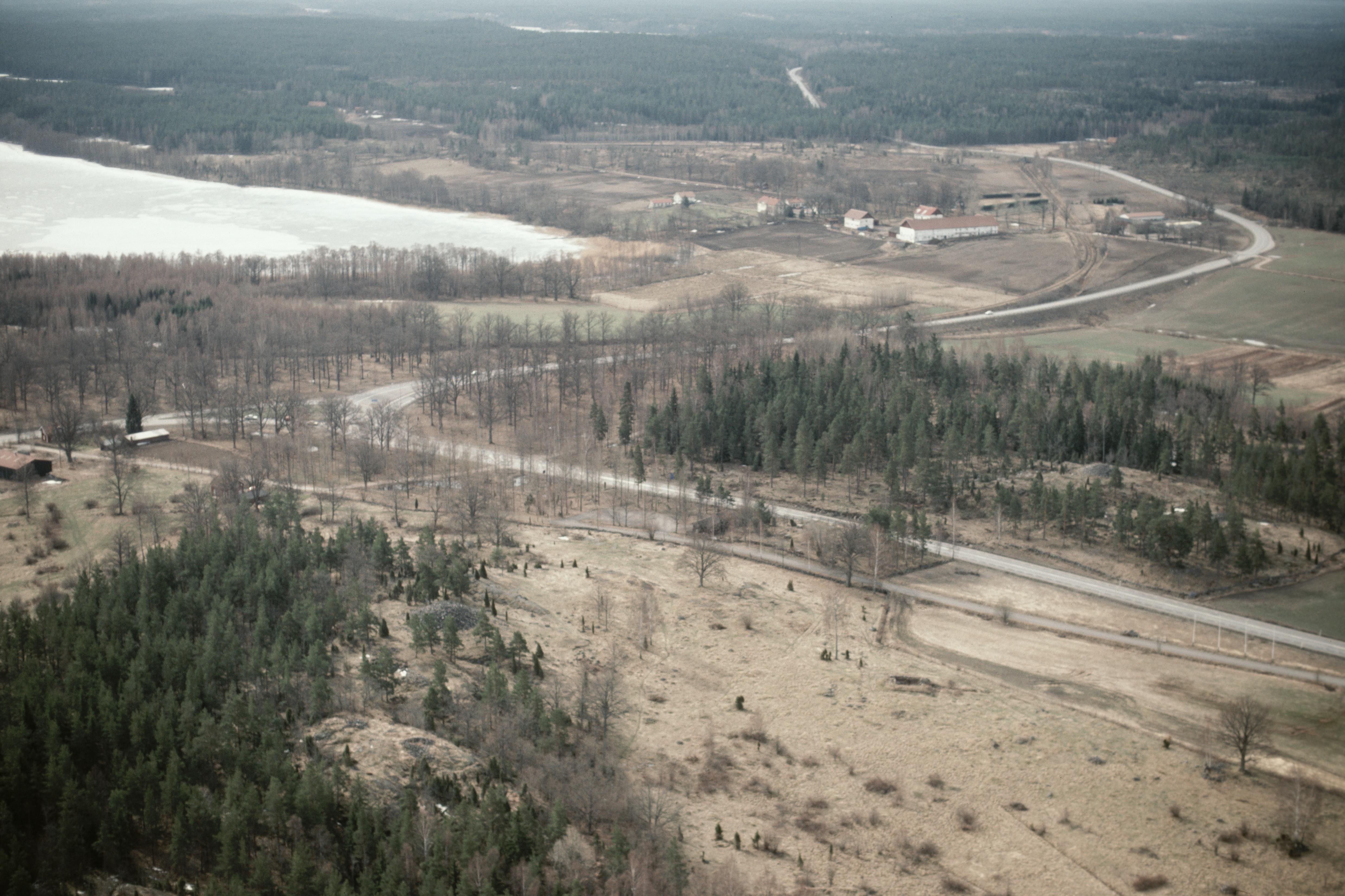 Beskrivning: Sjön Kvännaren vid gränsen mellan socknen Västervik och Törnsfall. Vy från Sandebo mot Gläntan i Herrhagen med röse RAÄnr Västervik 46:1, boplats 249:1 m.fl. I bildens övre del Rössle gård. Bilden är tagen mot (väderstreck): S