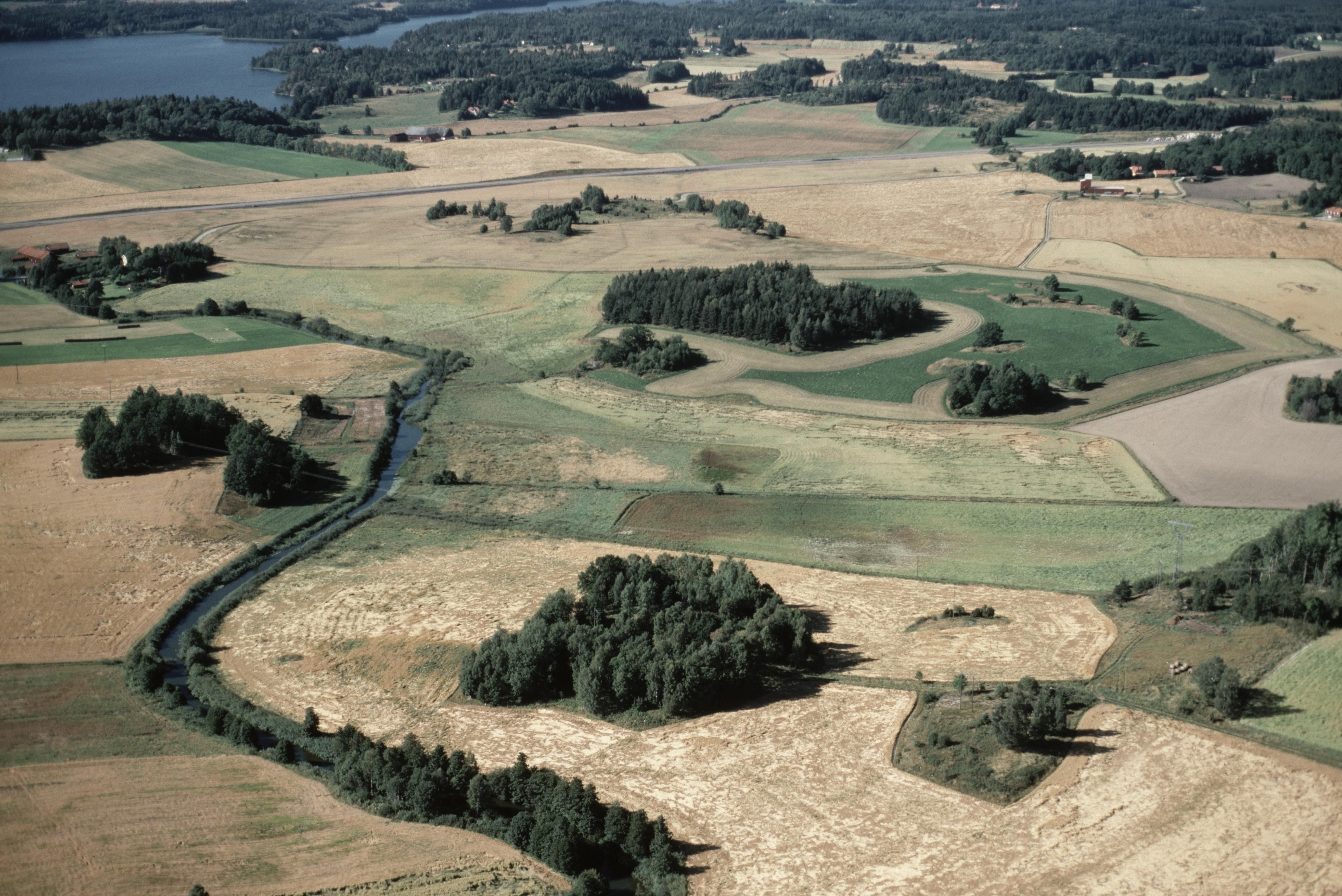 Beskrivning: Fornlämningsområde mellan Alby och Åbro. Hällristninghällar RAÄnr Trosa-Vagnhärad 248:1, 305:1, 307:1 m.fl. i åkerholmar vid Trosaån. Ån markerar gränsen mot socknet Västerljung (till vänster). Bilden är tagen mot (väderstreck): VNV