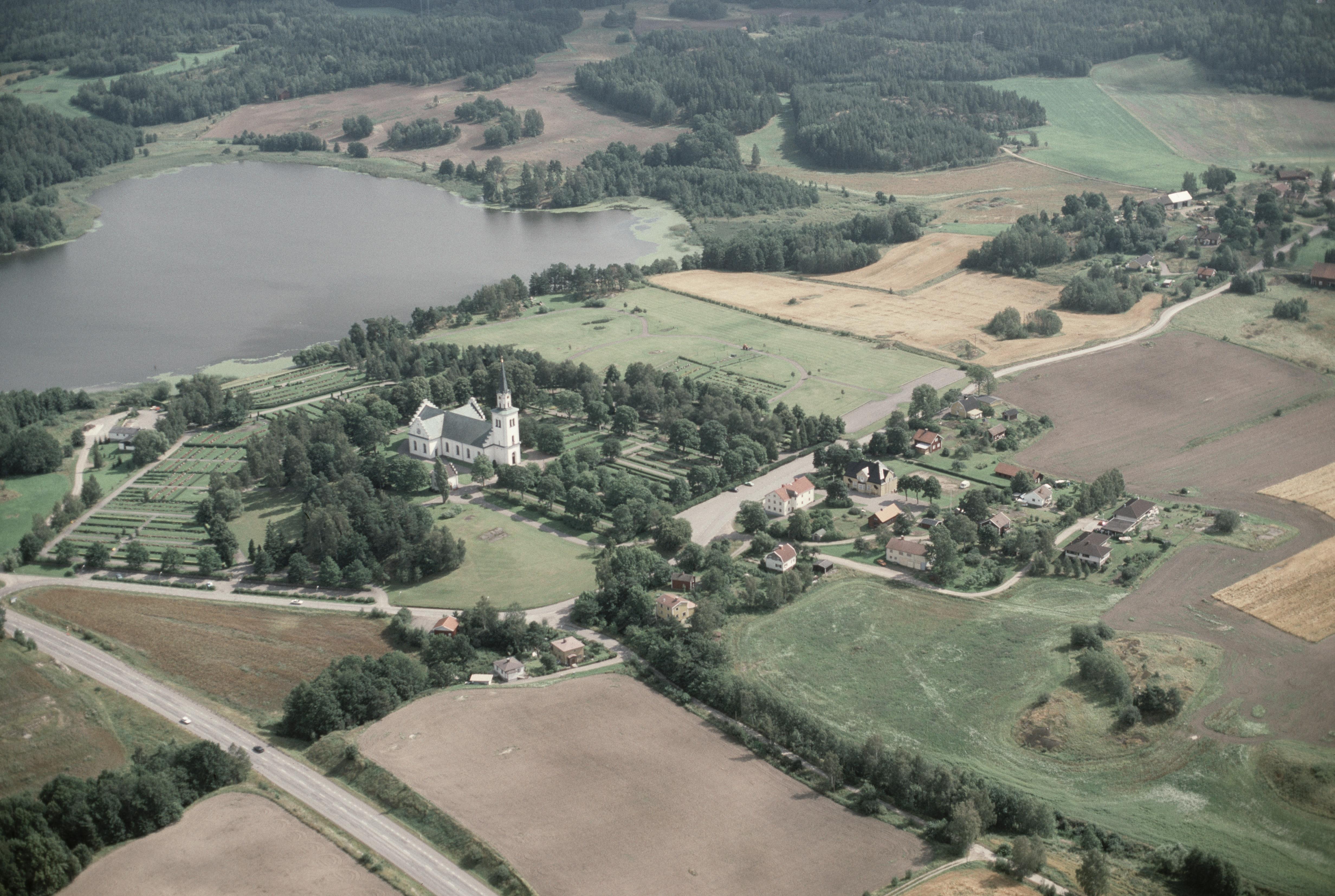 Beskrivning: Anmärkning (övrig): Riksintresse-nr/namn: E43 - Risinge. Socken: Risinge sn). Motivering: Centralbygd samt äldre och yngre kyrkomiljöer i småkuperat odlingslandskap med förhistorisk bruknings- och bosättningskontinuitet. - Uttryck för riksintresset: Märklig medeltidskyrka, med välbevarade kalkmålningar (Risingemästaren) från 1400-talet, omgiven av bogårdsmur. Prästgård från 1800-talet, hembygdsgård samt traditionell jordbruksbebyggelse. Ny kyrka i nygotisk stil från mitten av 1800-talet. Järnåldersgravfält. [Texten uppdaterat av Riksantikvarieämbetet våren 2013.] Beskrivning: Risinge Nya kyrka vid Hultbosjön. Bilden är tagen mot (väderstreck): SO Fotosyfte: Flygbildsdokumentation