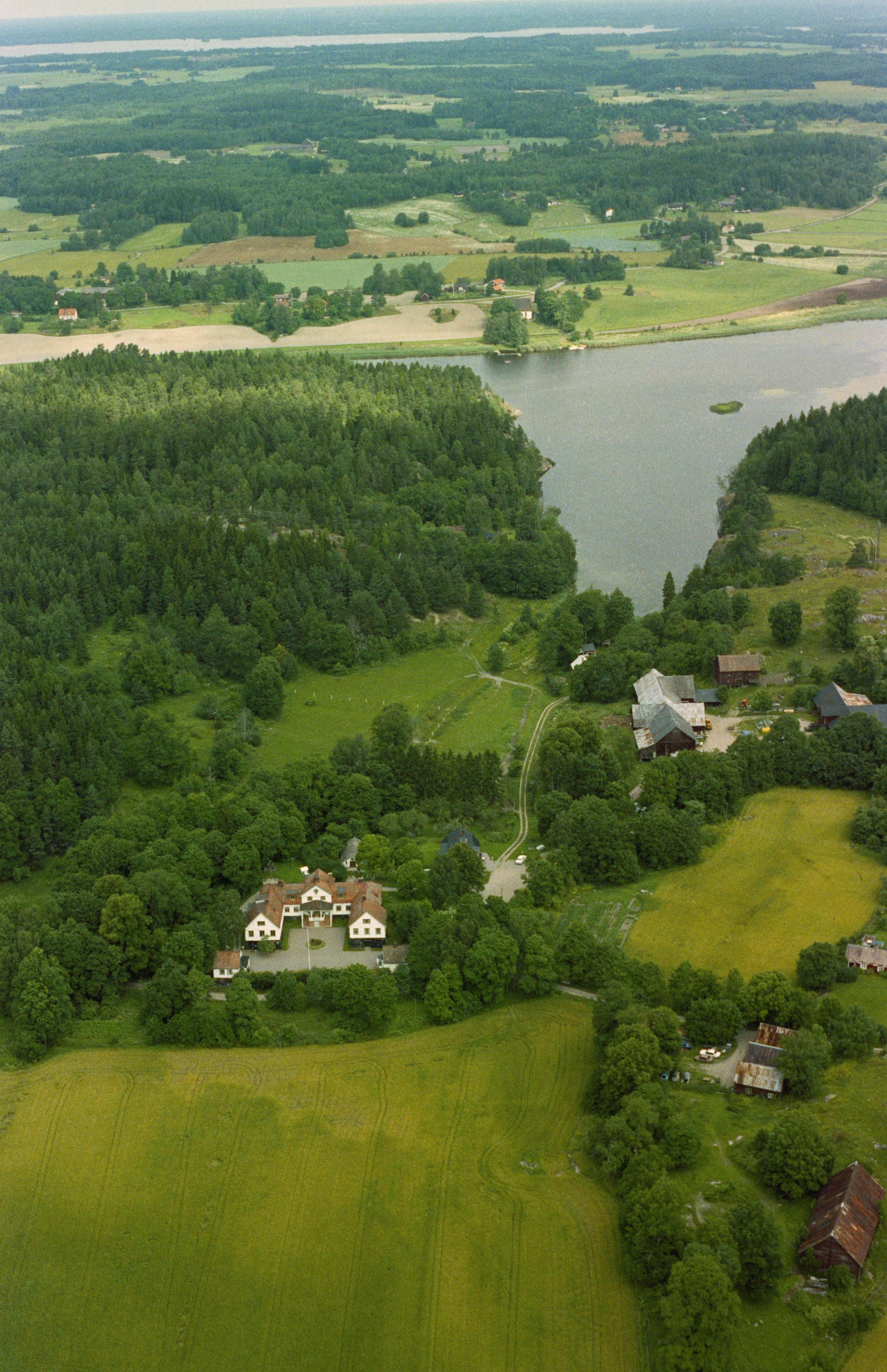 Beskrivning: Degarö herrgård (skrivs även Degerö) vid Malstasjön. I bildens övre del Malsta kyrka i Malstaby. Bilden är tagen mot (väderstreck): N