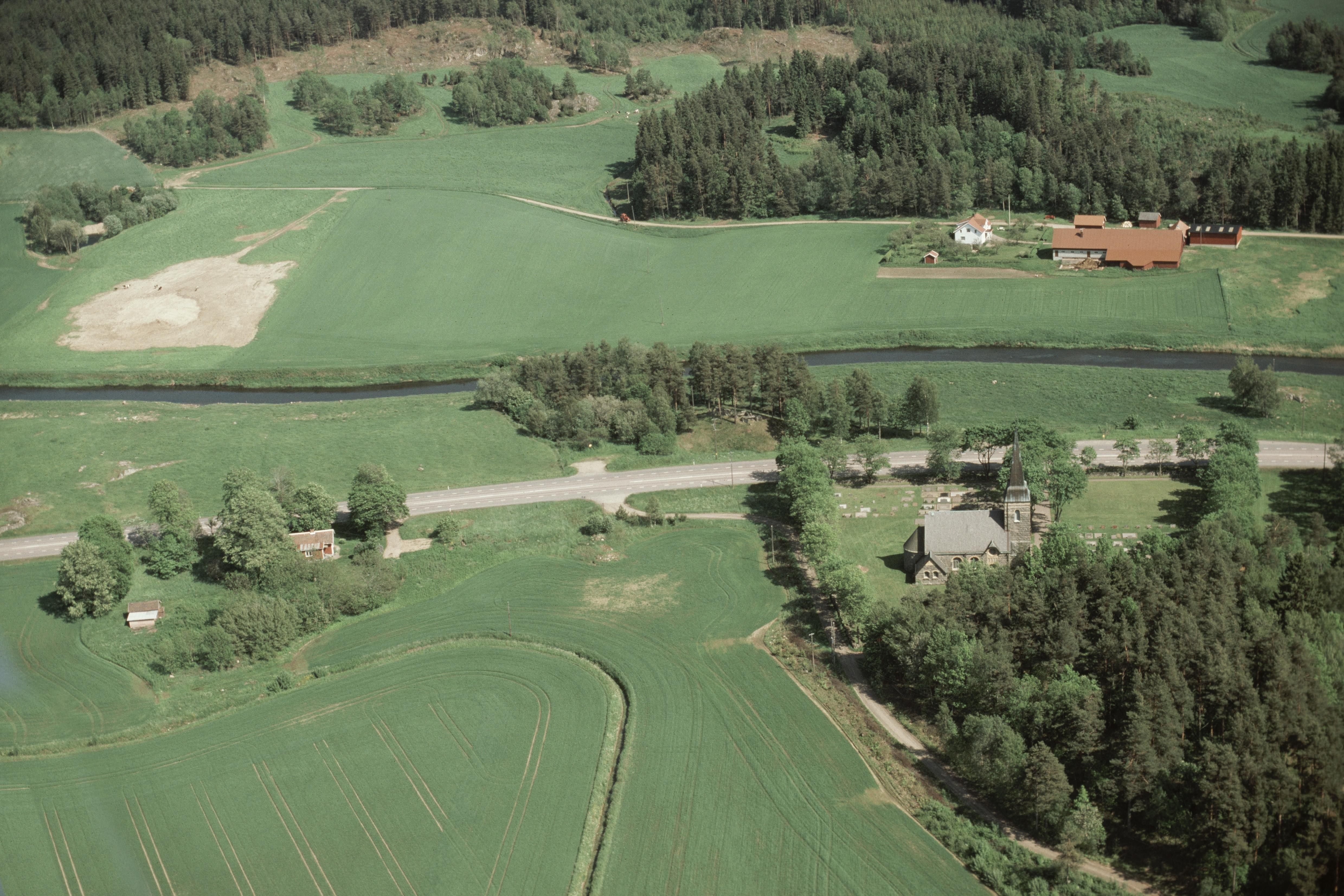 Beskrivning: Södra Härene kyrka och Jättakullen RAÄnr Södra Härene 4:1. Bilden är tagen mot (väderstreck): SO