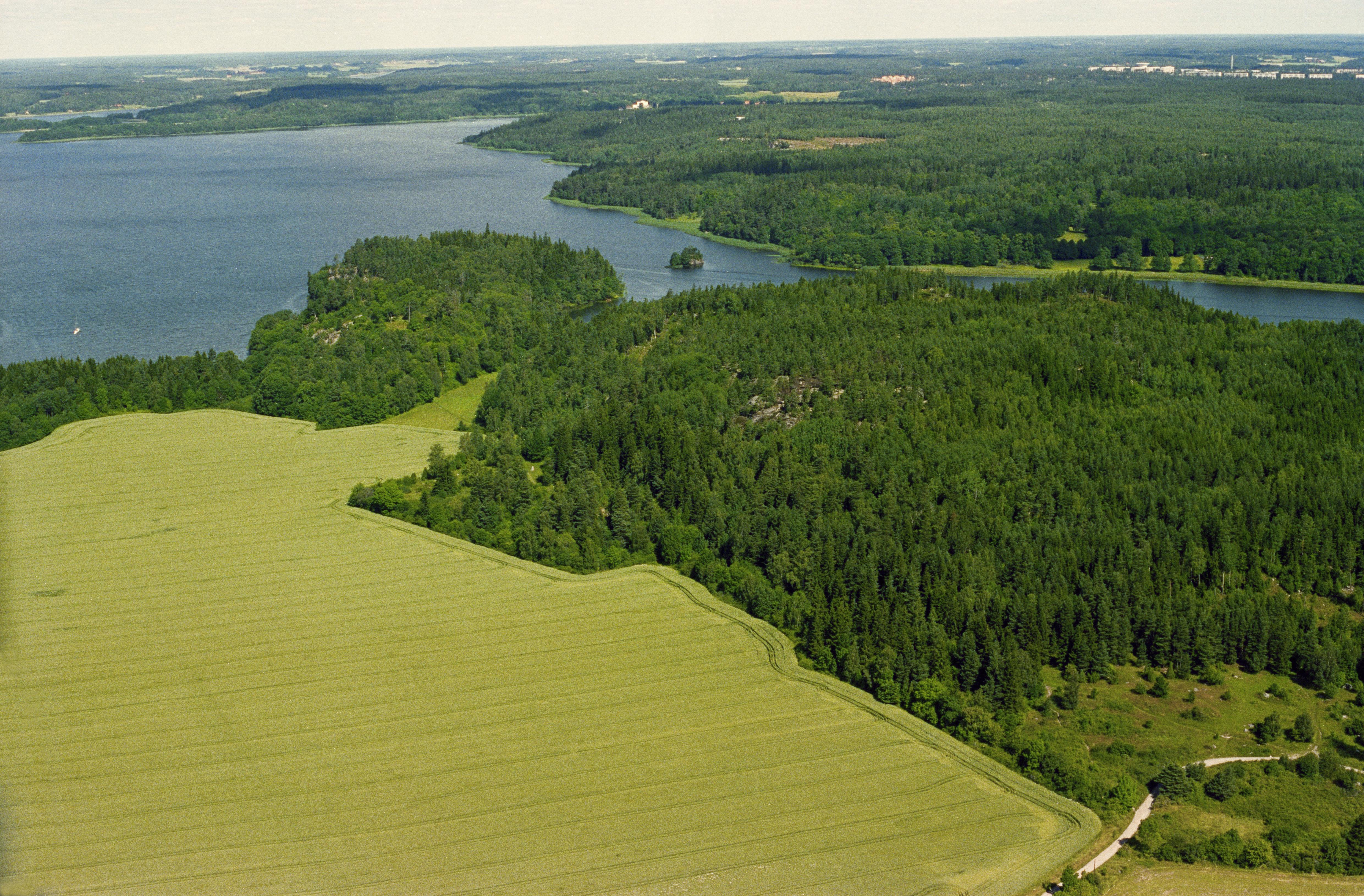 Beskrivning: Runsa gravfält med skeppssättning RAÄnr Ed 1:1 och Runsa fornborg / ?Runsa borg? RAÄnr Ed 2:1. Rosersbergsviken och Norrsunda socken i bildens övre del. Bilden är tagen mot (väderstreck): NV