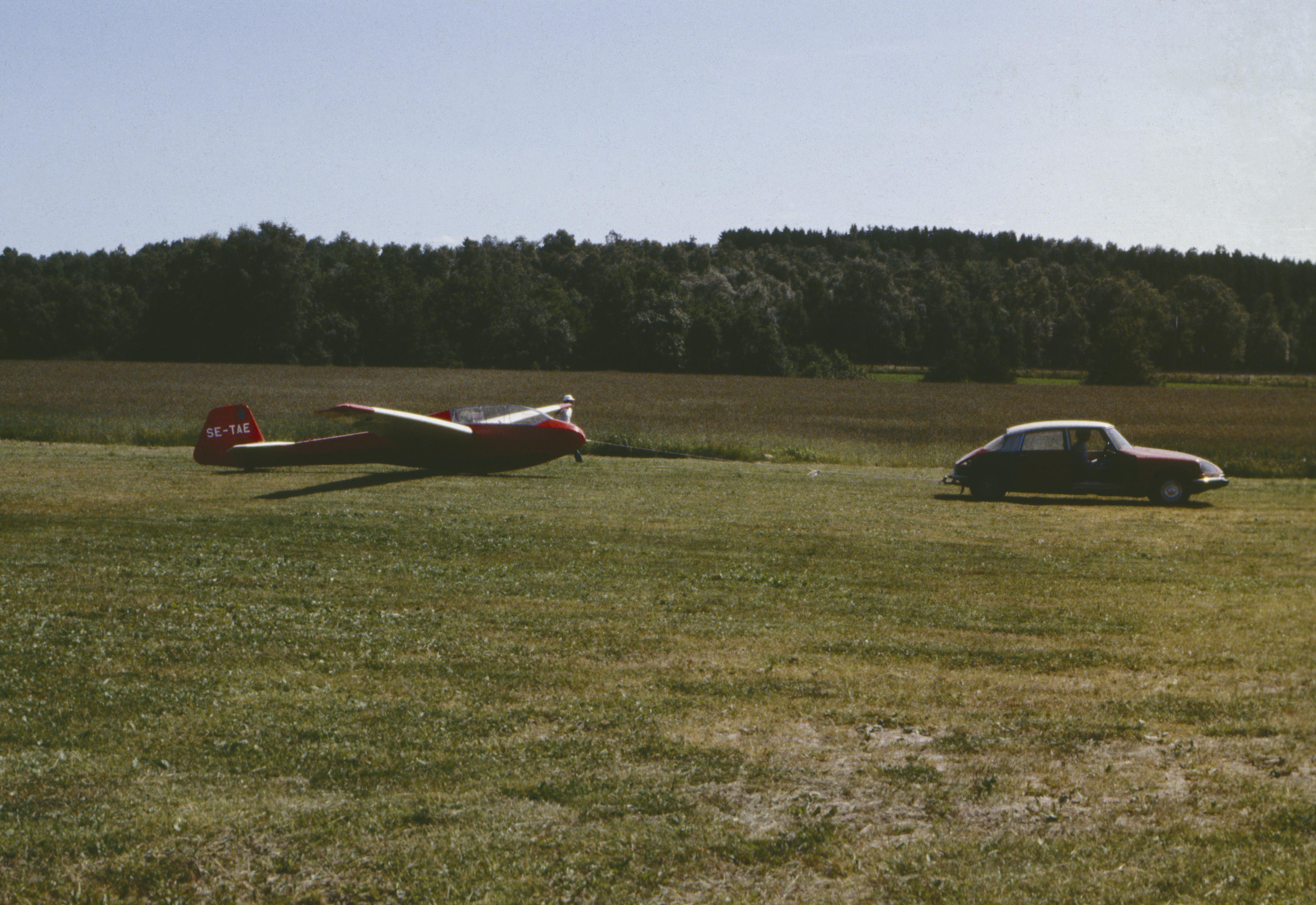 Beskrivning: Alingsås flygfält (med grässtråk) i Vallen, c:a 3 km norost om Alingsås stad. (NB! Ej flygbild, men markbild som visar aktiviteter på flygfältet). Bilden är tagen mot (väderstreck): Ö