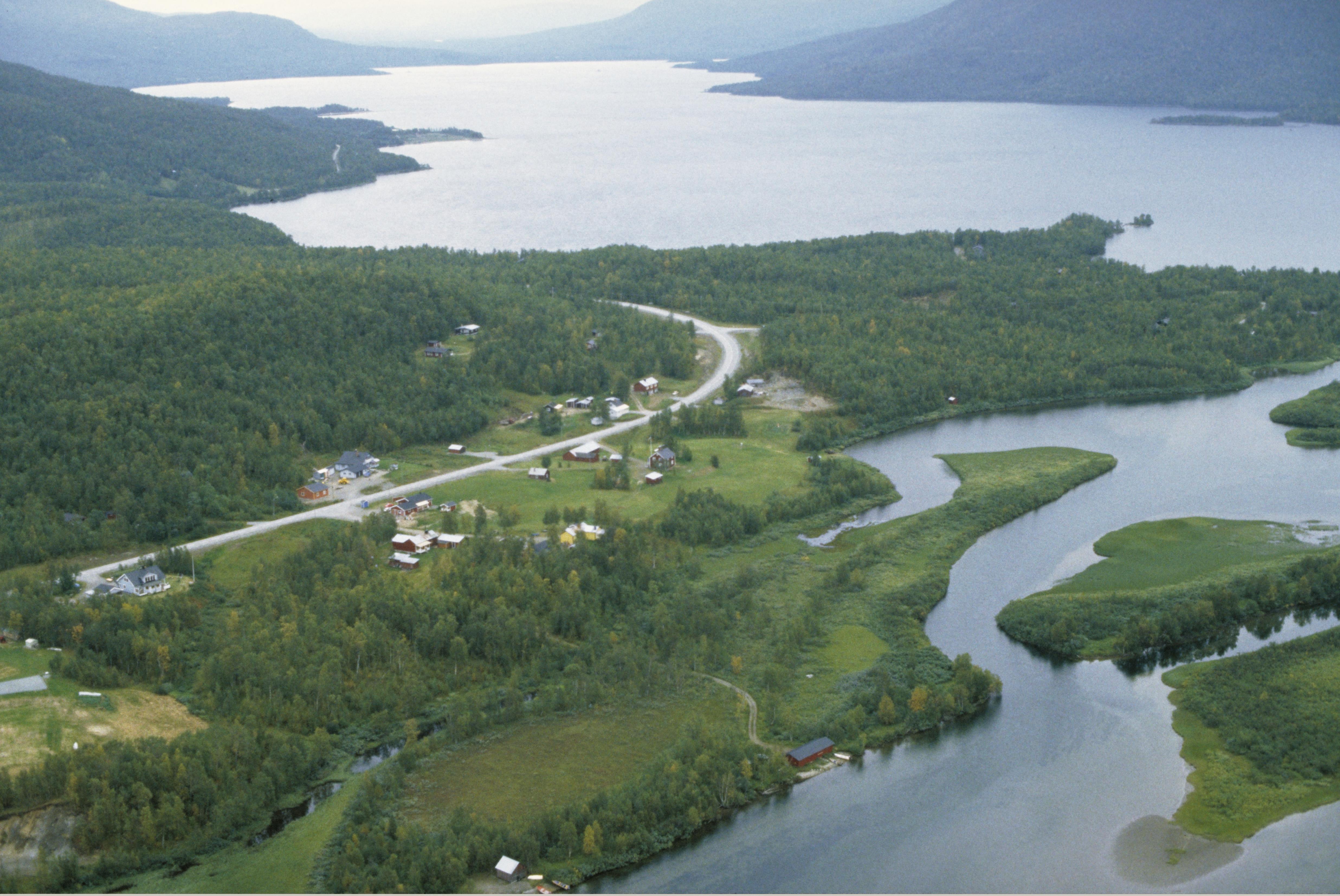 Beskrivning: Laisholms by. Umeälvens inflöde i sjön Stor-Laisan (Stoere Laajsere) vid Gammställnäset till höger. Vid bildens mitt husgrund RAÄnr Tärna 173:1, m.m. Bilden är tagen mot (väderstreck): Ö