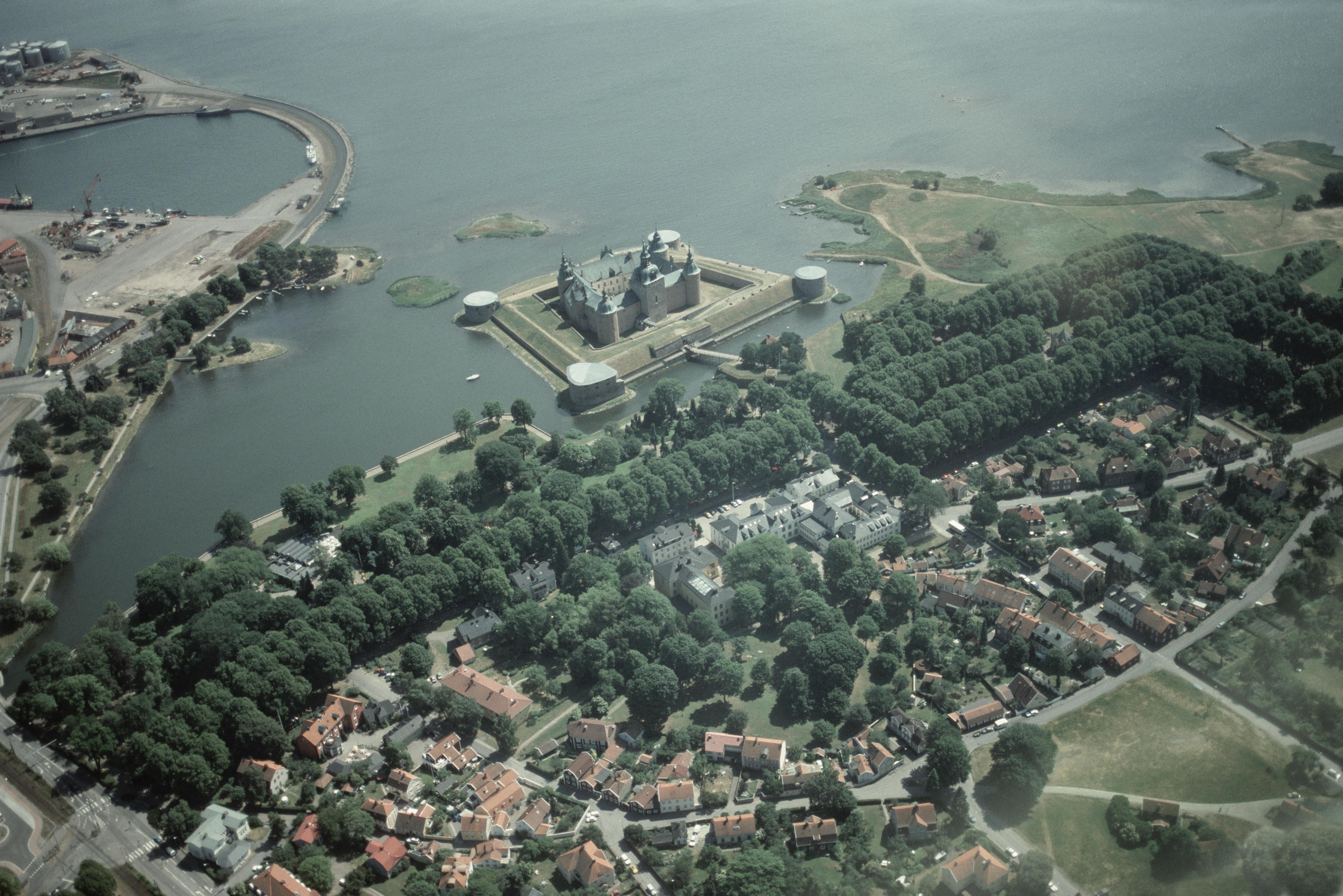 Beskrivning: Kalmar stad. Kalmar slott RAÄnr Kalmar 53:1 vid bildens mitt. Bilden är tagen mot (väderstreck): SO