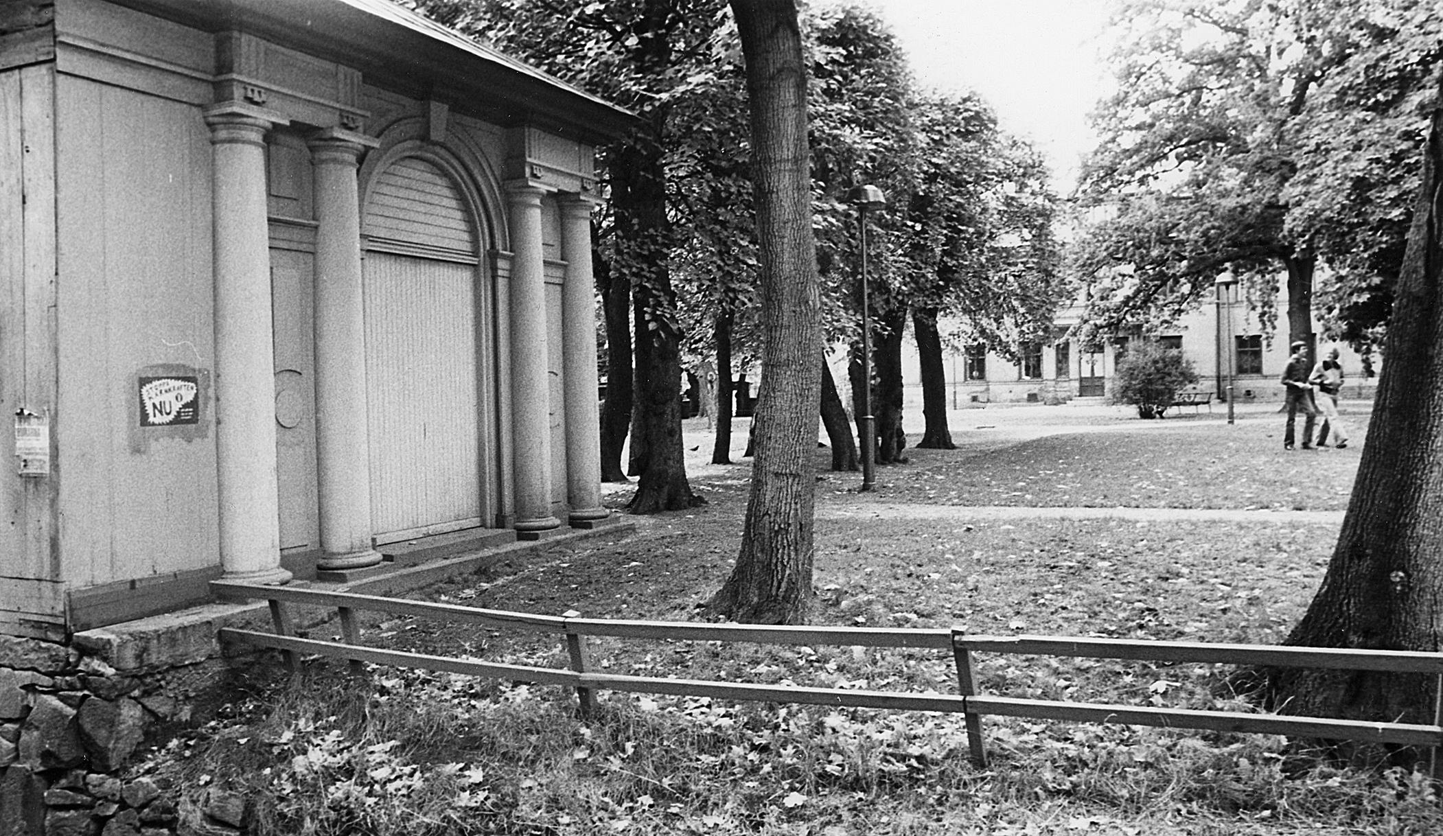 Spökslottet med huvudbyggnaden i fonden samt parken och lusthuset mot Holländaregatan.