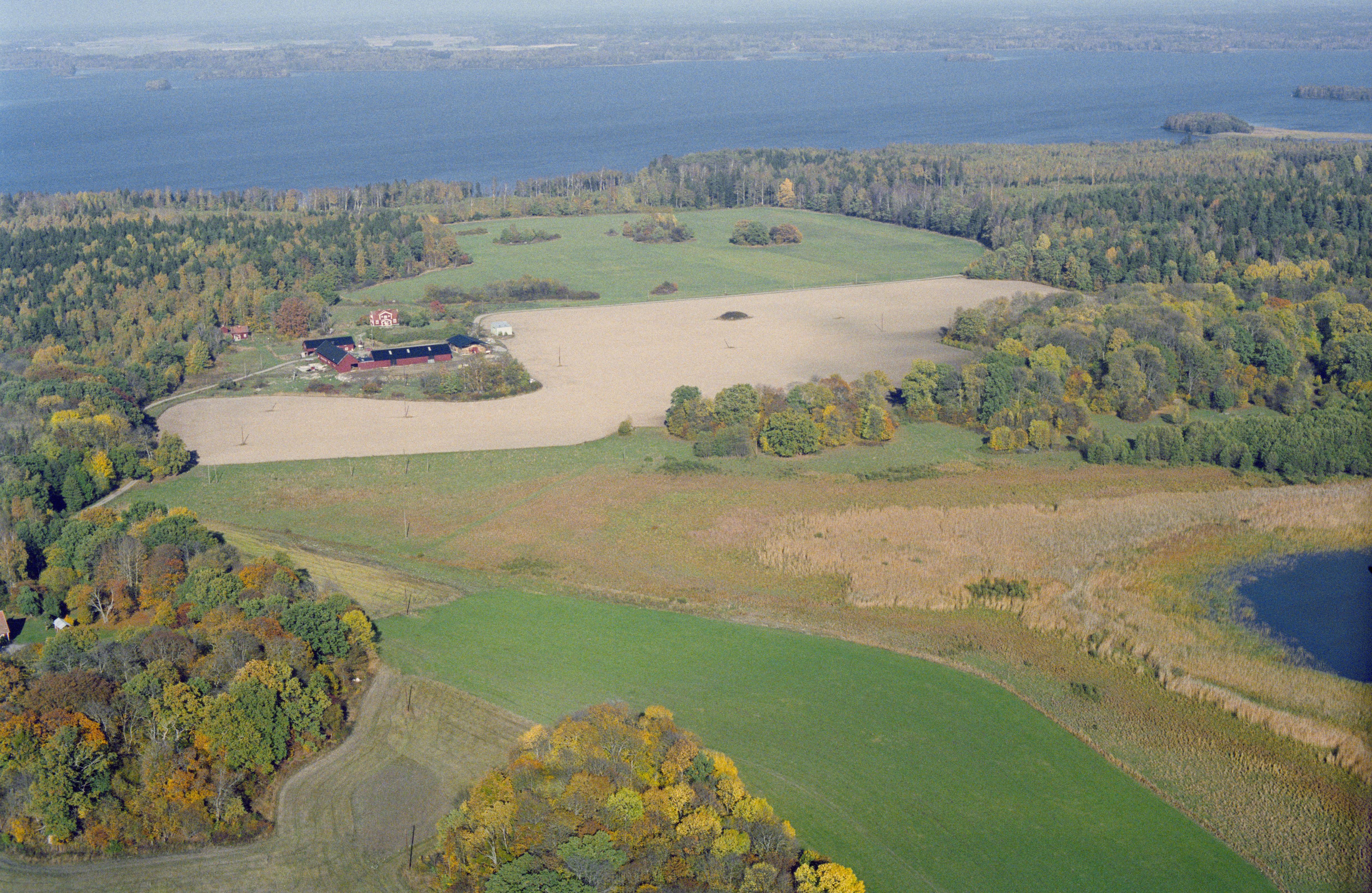 Beskrivning: Ridön i Ridöfjärden i Mälaren. Till vänster om bildens mitt Ängsnäs torp. Uppe till vänster gården Västeräng. Till höger över bildens mitt område vid Munkkällan RAÄnr Västerås-Barkarö 13:1. Bilden är tagen mot (väderstreck): NO