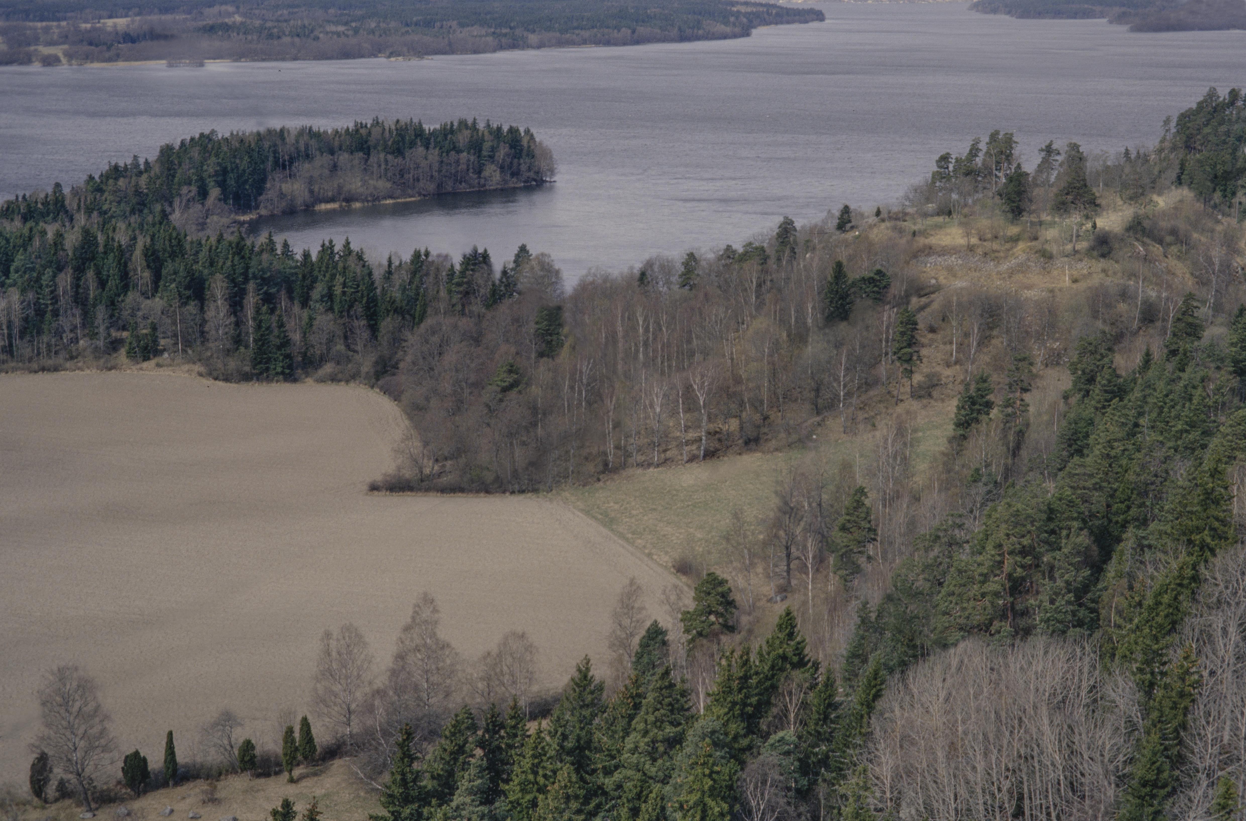 Beskrivning: Nere till vänster Runsa gravfält med skeppssättning RAÄnr Ed 1:1. Uppe till höger Runsa fornborg / ?Runsa borg? RAÄnr Ed 2:1. Norrsunda socken i bildens övre del. Bilden är tagen mot (väderstreck): NV