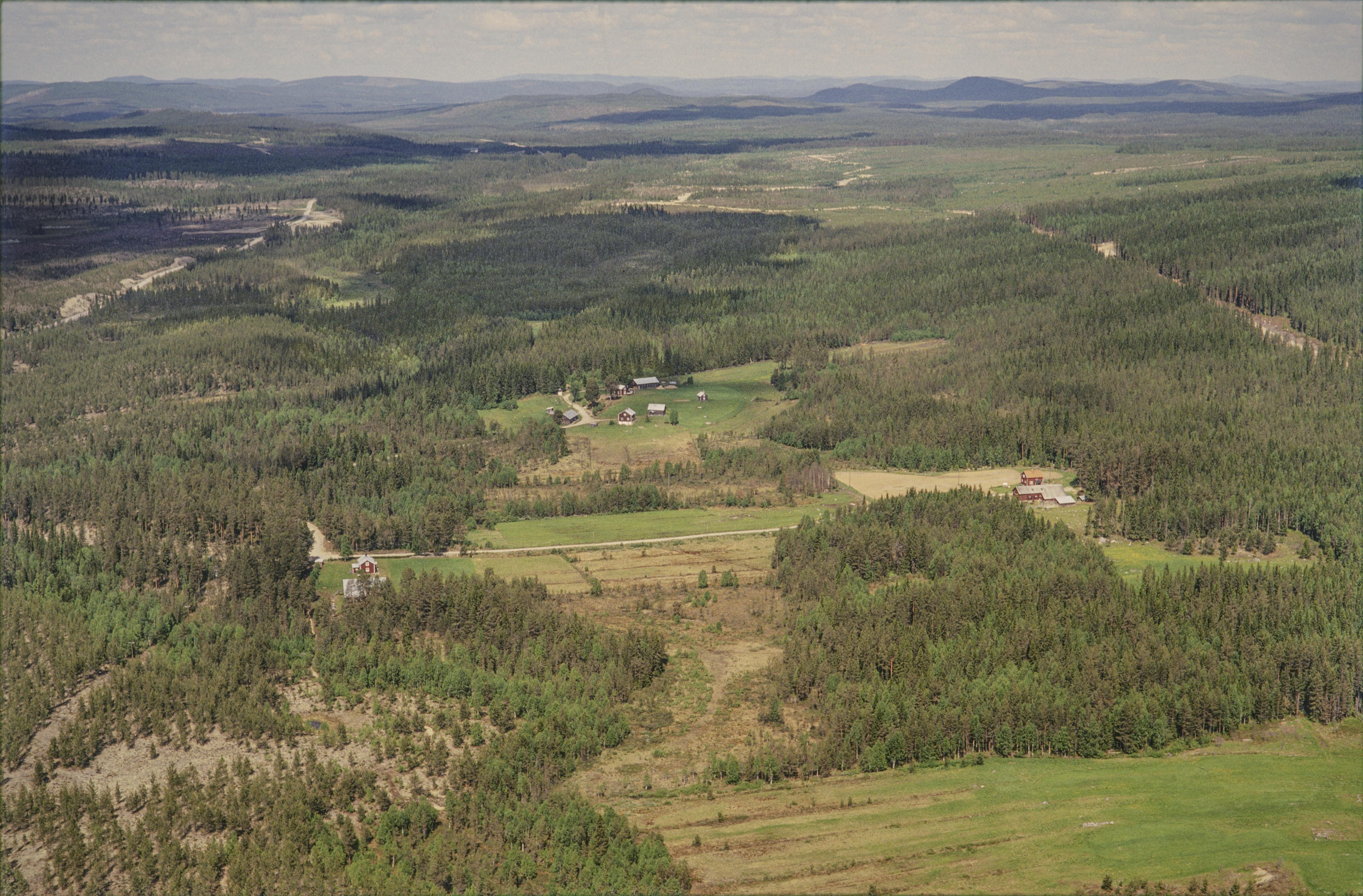 Beskrivning: Torpet Eliasmyren (skrivs även Eliasmyrorna) vid bildens mitt. Till vänster i bildens övre del brott / täktgrop Anundsjö 710. Bilden är tagen mot (väderstreck): NNV