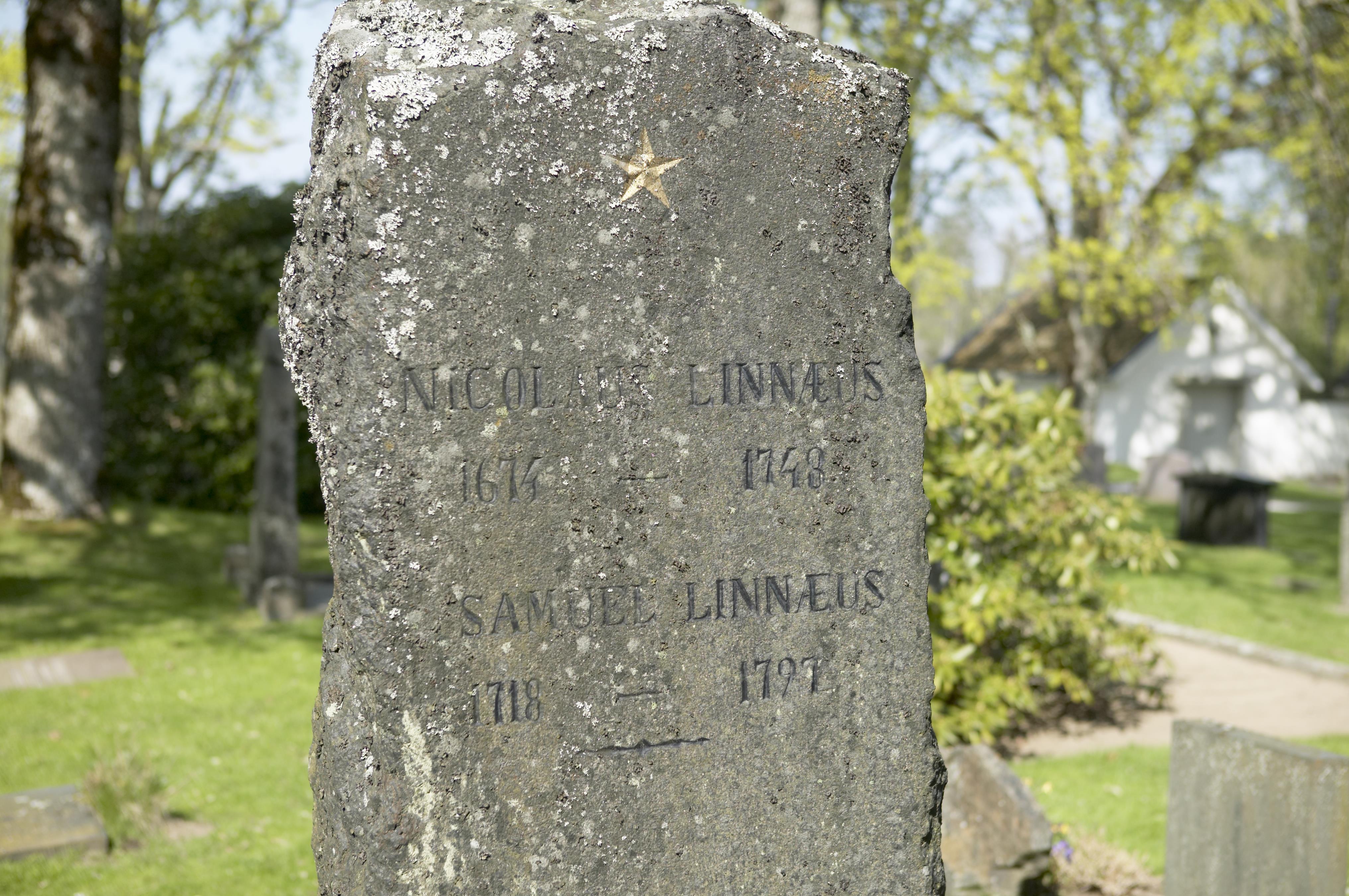 Beskrivning: Linnaeus familjegrav med Carl von Linnés far Nicolaus Linnaeus och hans yngre bror Samuel Linneus.