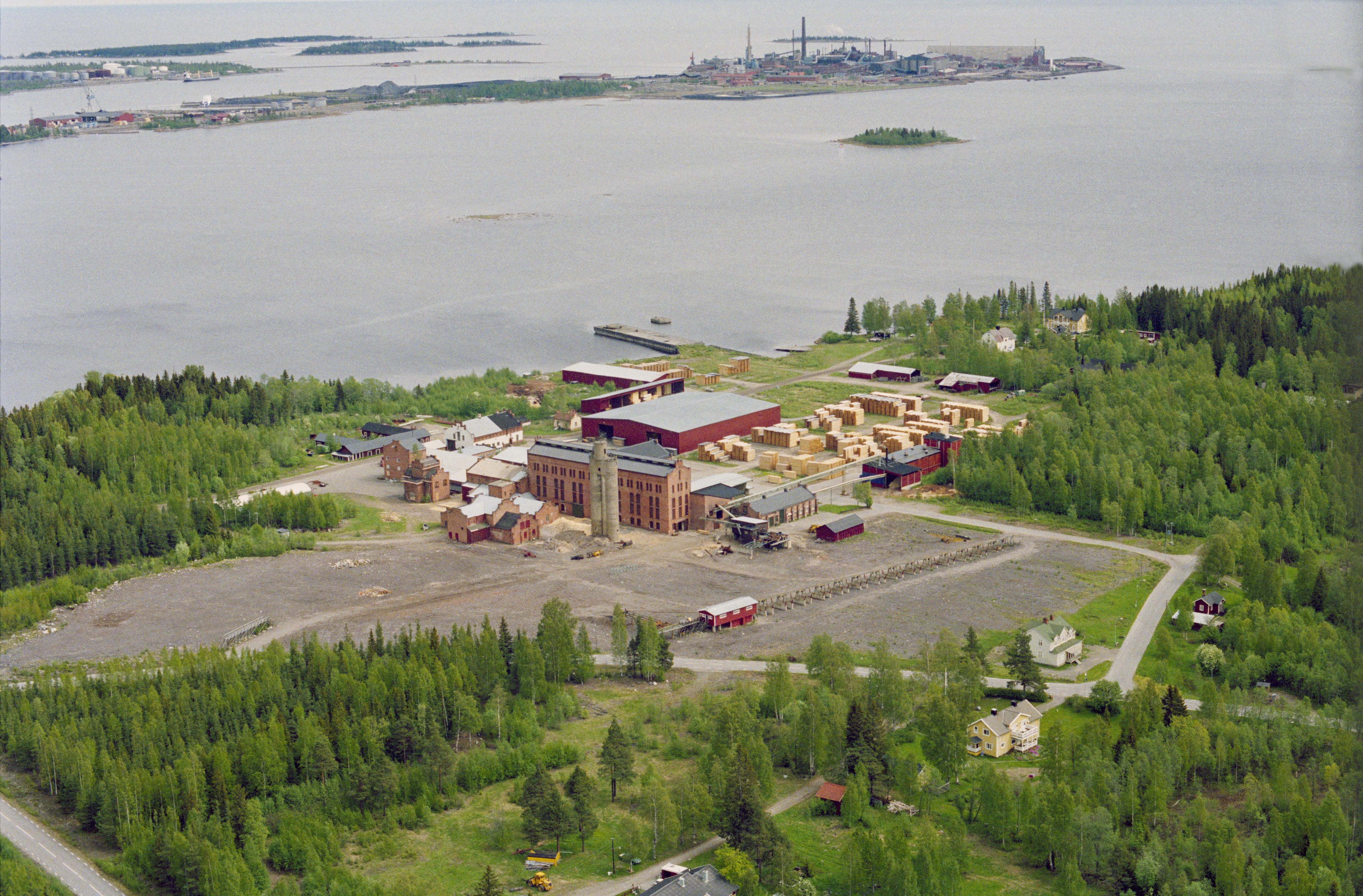 Beskrivning: Örvikens inustriort och sågverkssamhälle på Degerö mellan Ytterviksfjärden och Sörfjärden (i bildens övre del). Vid bildens mitt sågverk / träindustri på Mittiörudden. I bildens övre kant Skelleftehamn i socknet Skellefteå stad. Bilden är tagen mot (väderstreck): NO