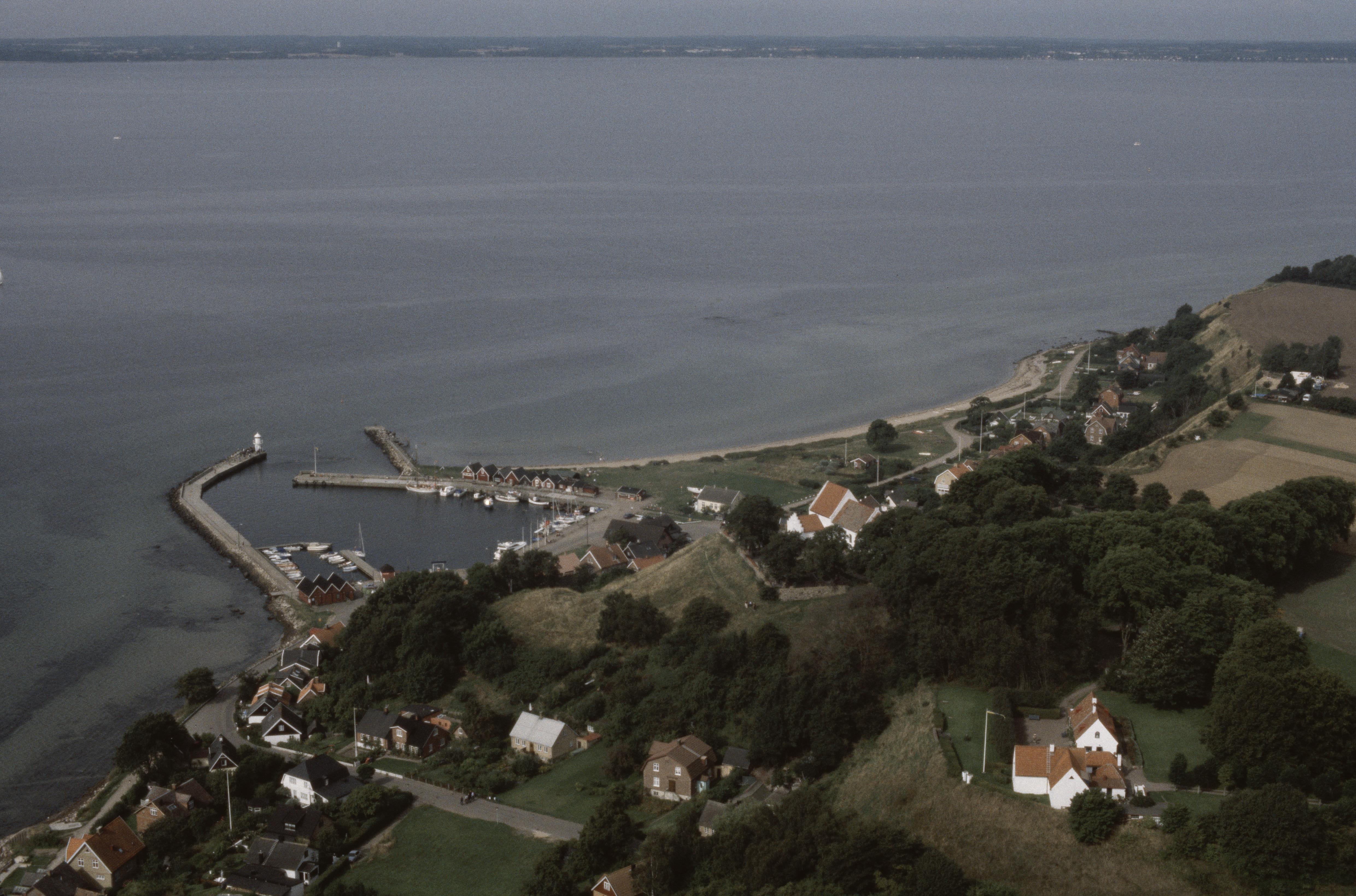 Beskrivning: Fiskeläget Kyrkbacken. Sankt Ibbs gamla kyrka. Bilden är tagen mot (väderstreck): V