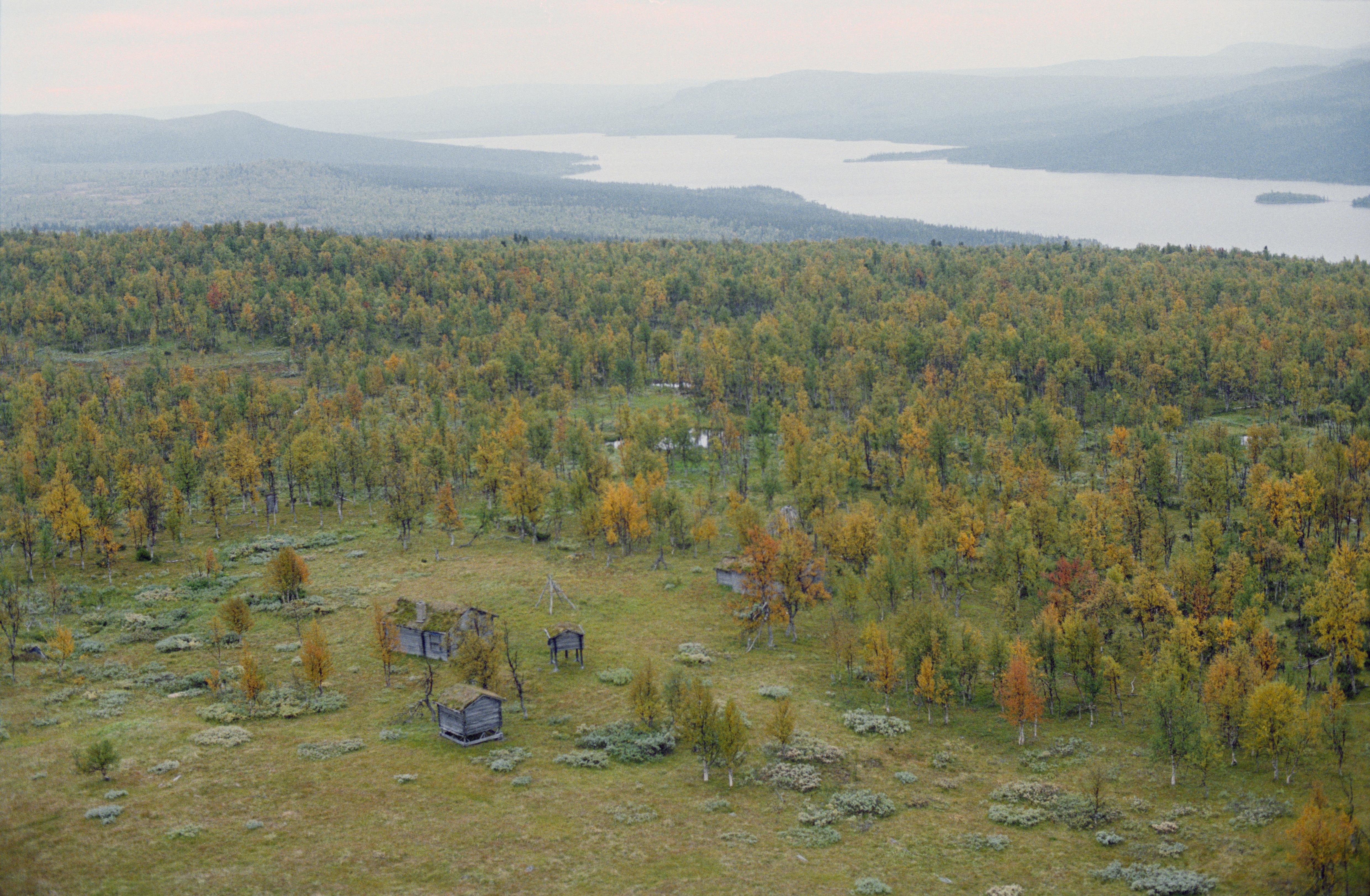 Beskrivning: Rusa sameviste (Ruvssá) på nordsidan av sjön Överst-Juktan. Området ingår i Vindelfjällens naturreservat. Bilden är tagen mot (väderstreck): S