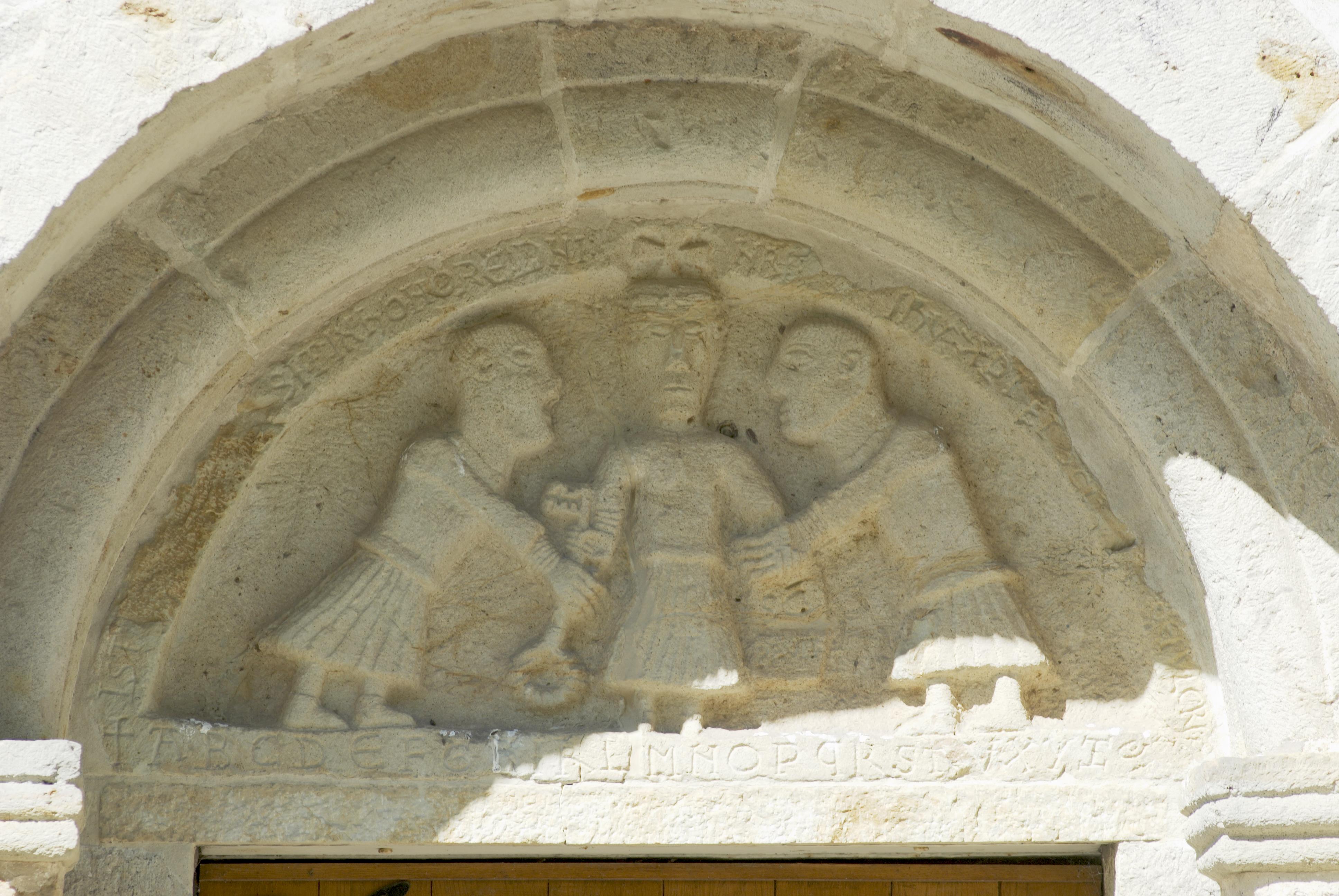 Beskrivning: Portrelief i sydportalen som skildrar, Kristi överlämnande av nyckeln och av lagen.
