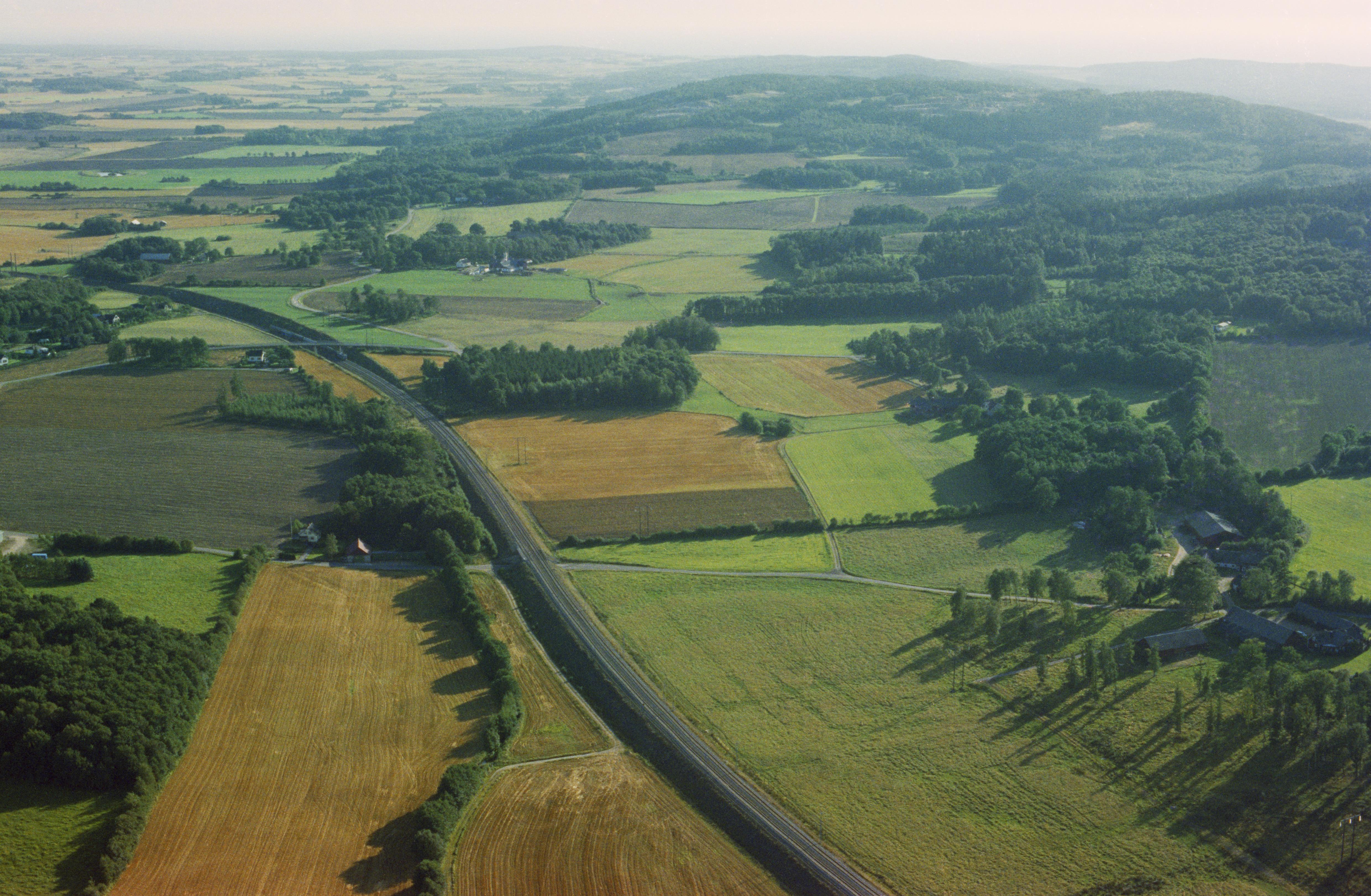 Beskrivning: Vid Hörsås - Lilla Berg - Noregård - Öringe, innan bygge av väg E6 mellan Laholm och Slöinge. Till höger boplats RAÄnr Getinge 82:1-2. Bilden är tagen mot (väderstreck): SSV