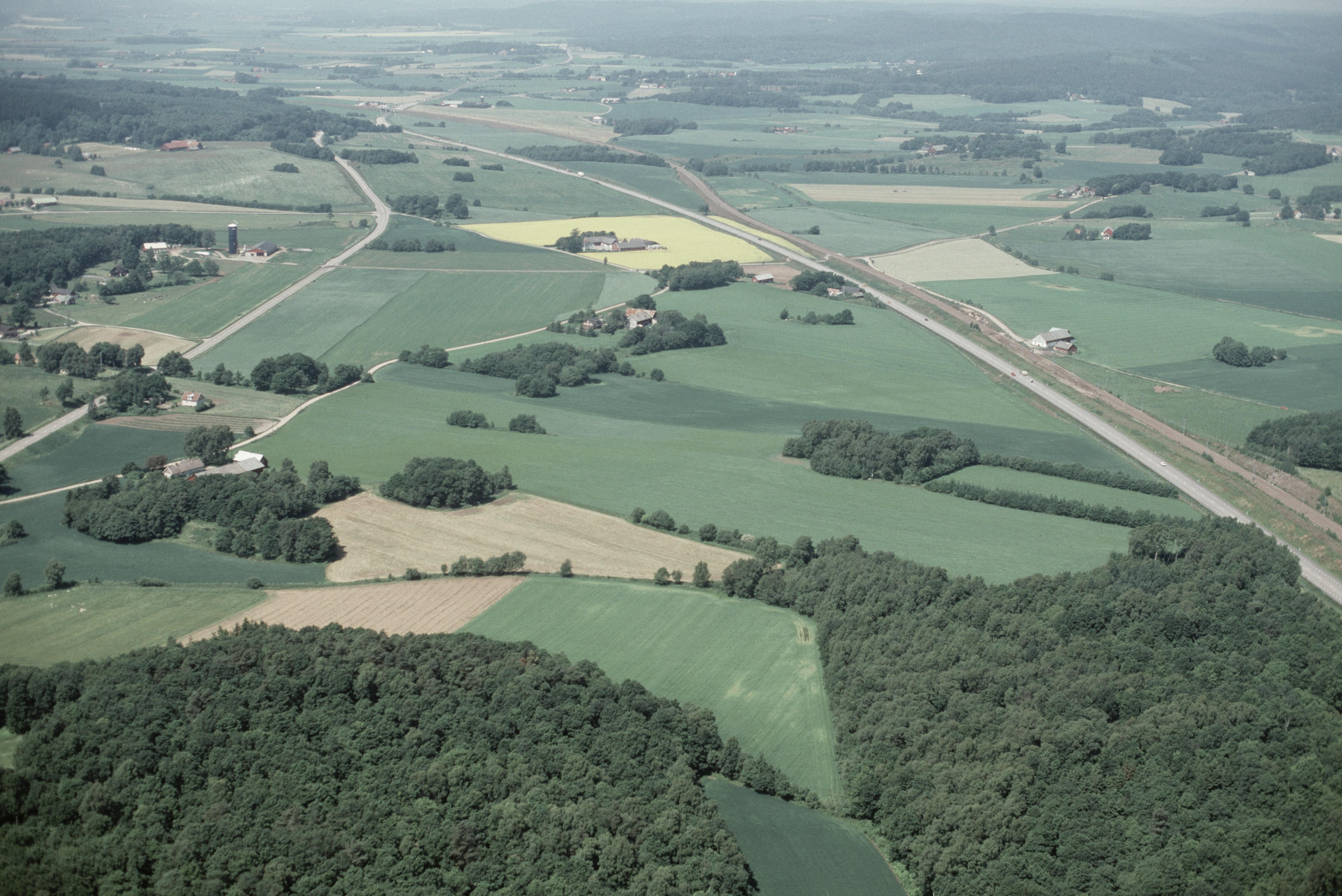 Beskrivning: Bygging av väg E6 mellan Laholm och Slöinge. Bilden är tagen mot (väderstreck): NV