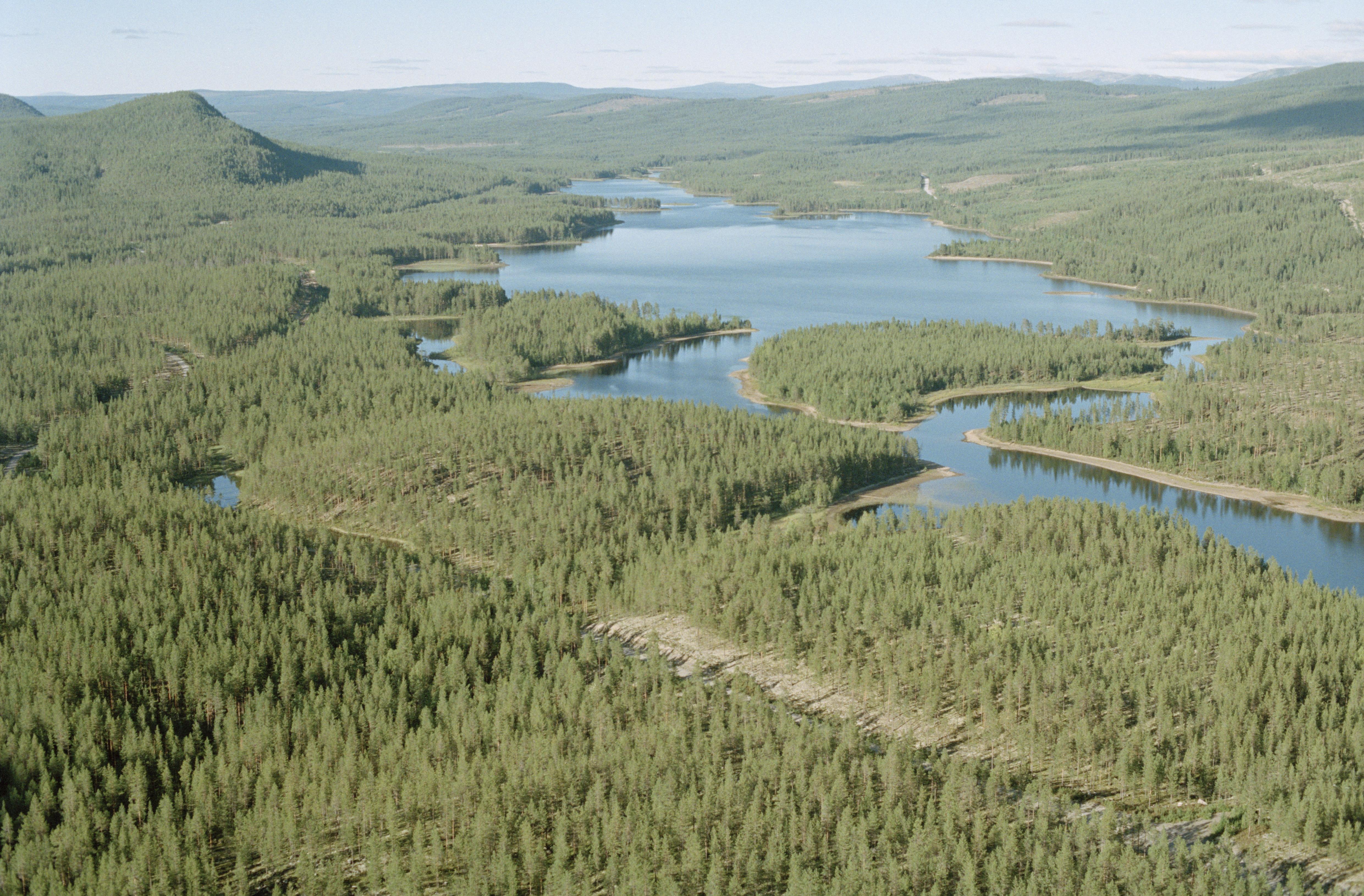 Beskrivning: Stavsjön som markerar gränsen mellan socknen Hede och Vemdalen (uppe i bildens högra hörn). Torsundet och Torsundholmen i bildens mitt med boplats RAÄnr Hede 50:1, 75:1 m.fl och fångstgrop Hede 82:1-3. Längs stranden uppe till vänster boplats RAÄnr Hede 15:1, 16:1, 17:1. 18:1, 19:1 m.fl. Bilden är tagen mot (väderstreck): NNO