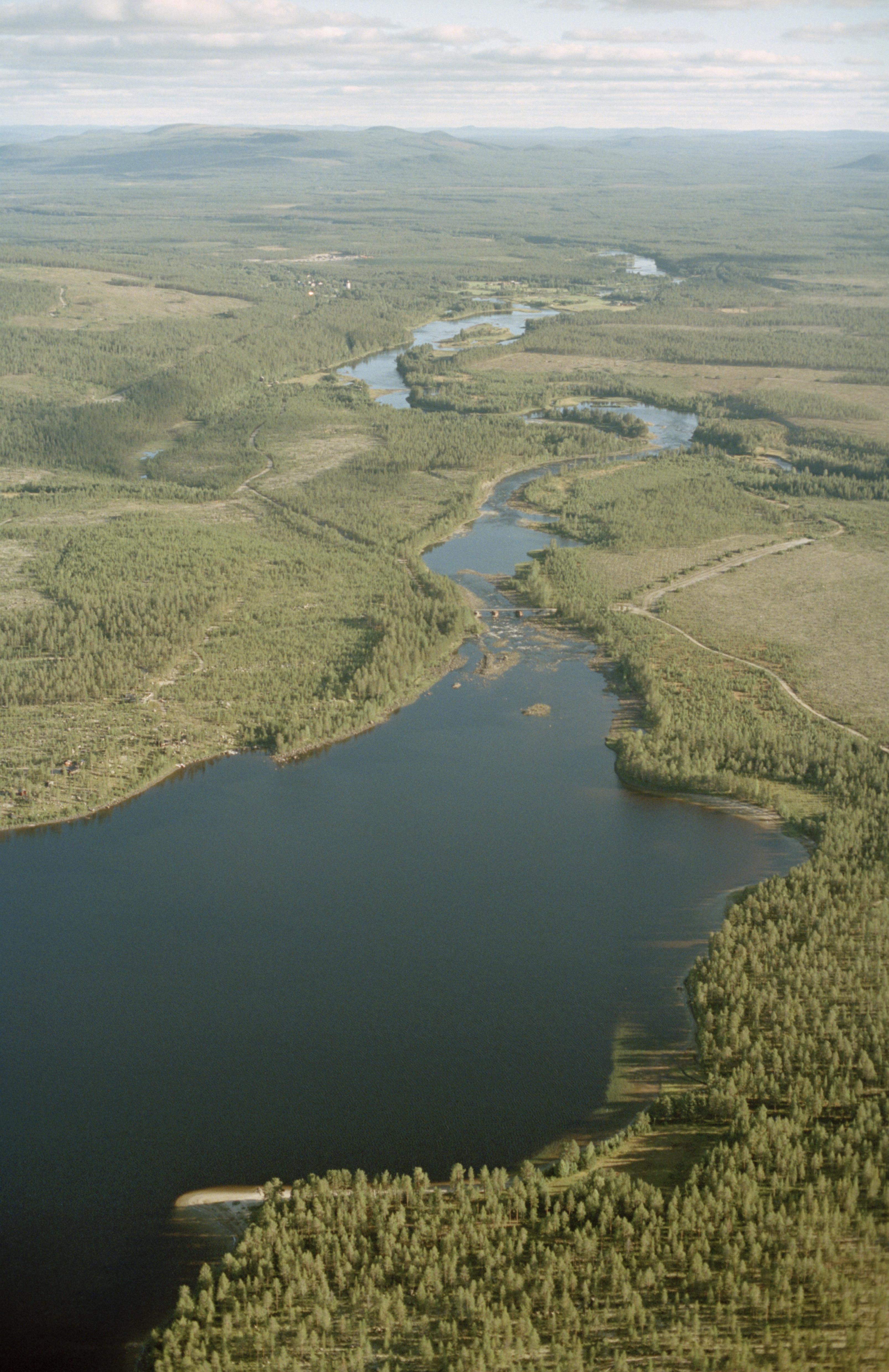 Beskrivning: Älven Ljusnan i södra delen av Neder-Ransjön, sydväst om Ransjö by. Vid bildens mitt bro RAÄnr Linsell 92:1 över Ransjöforsen i Linsellborrens naturreservat. Bilden är tagen mot (väderstreck): S