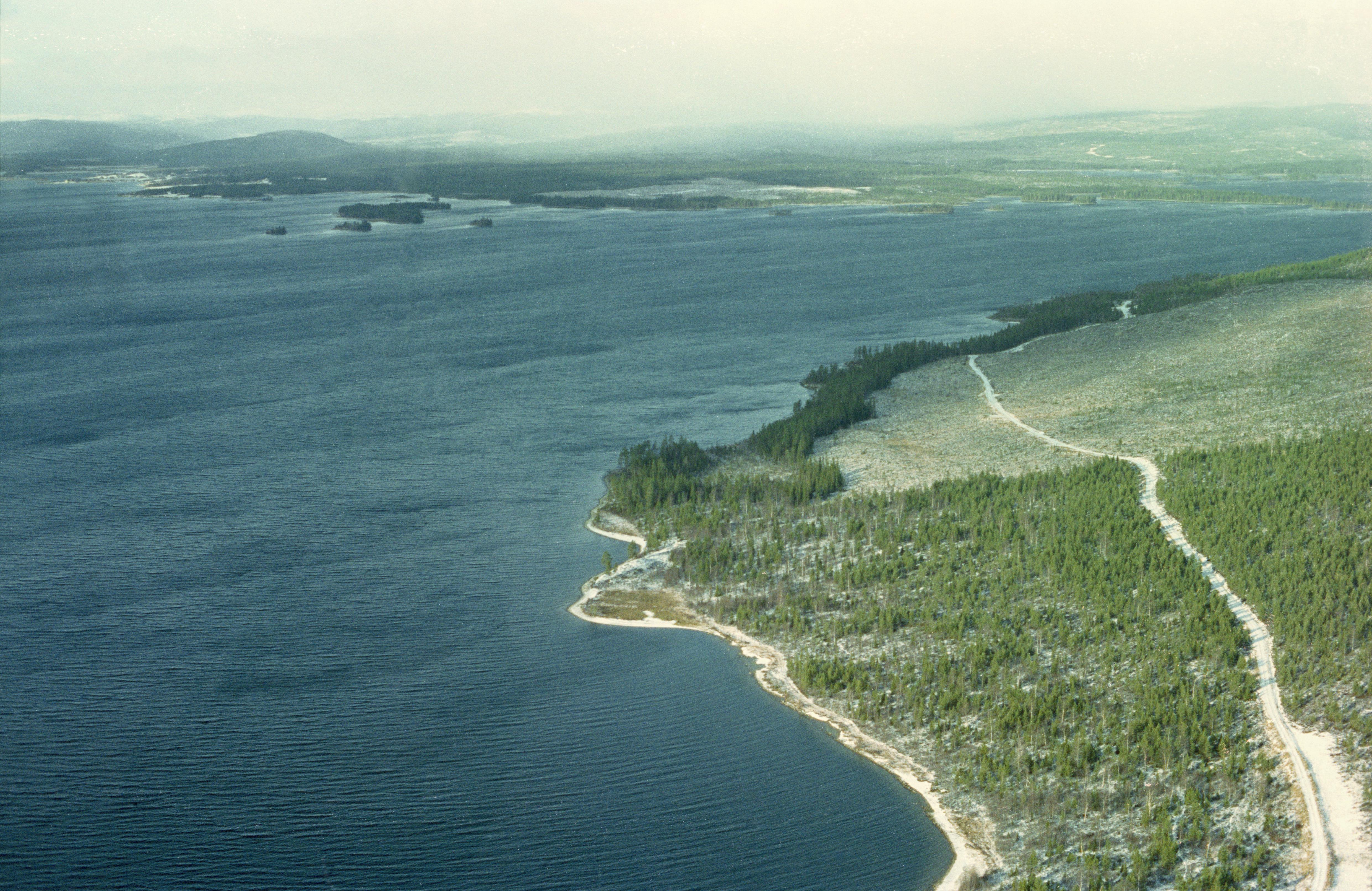Beskrivning: Vid bildens mitt gravfält Krankmårtenhögen (skrivs även (Krank-Mårtenhögen) RAÄnr Storsjö 9:1 vid Storsjön. I området även boplats RAÄnr Storsjö 154:1 och 254:1, fångstgrop Storsjö 155:1 m.m. Bilden är tagen mot (väderstreck): VNV