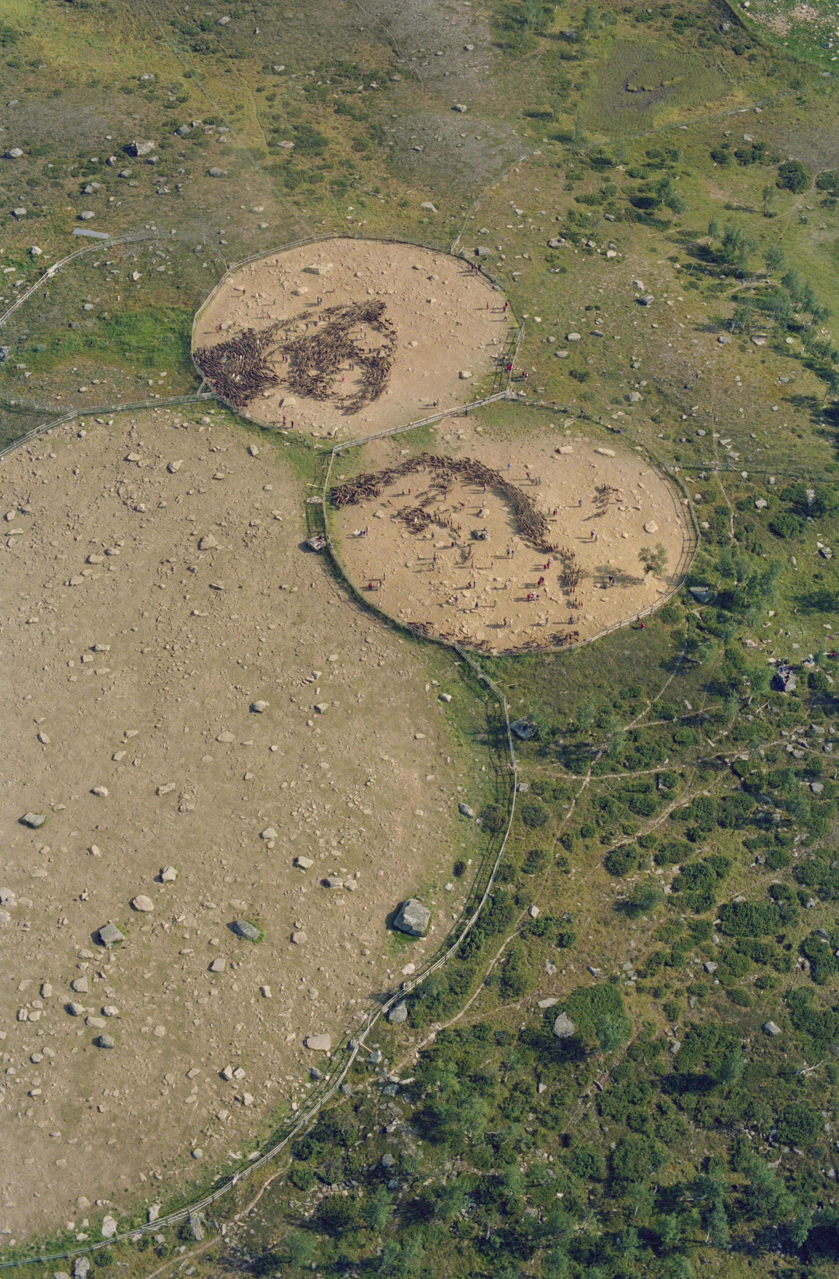 Beskrivning: Rengärden med renskiljning (rarkning) i samevistet Parka (Bárkka). På sydsidan av rengärden ett fångstgropssystem RAÄnr Arjeplog 327:1. Bilden är tagen mot (väderstreck): NO