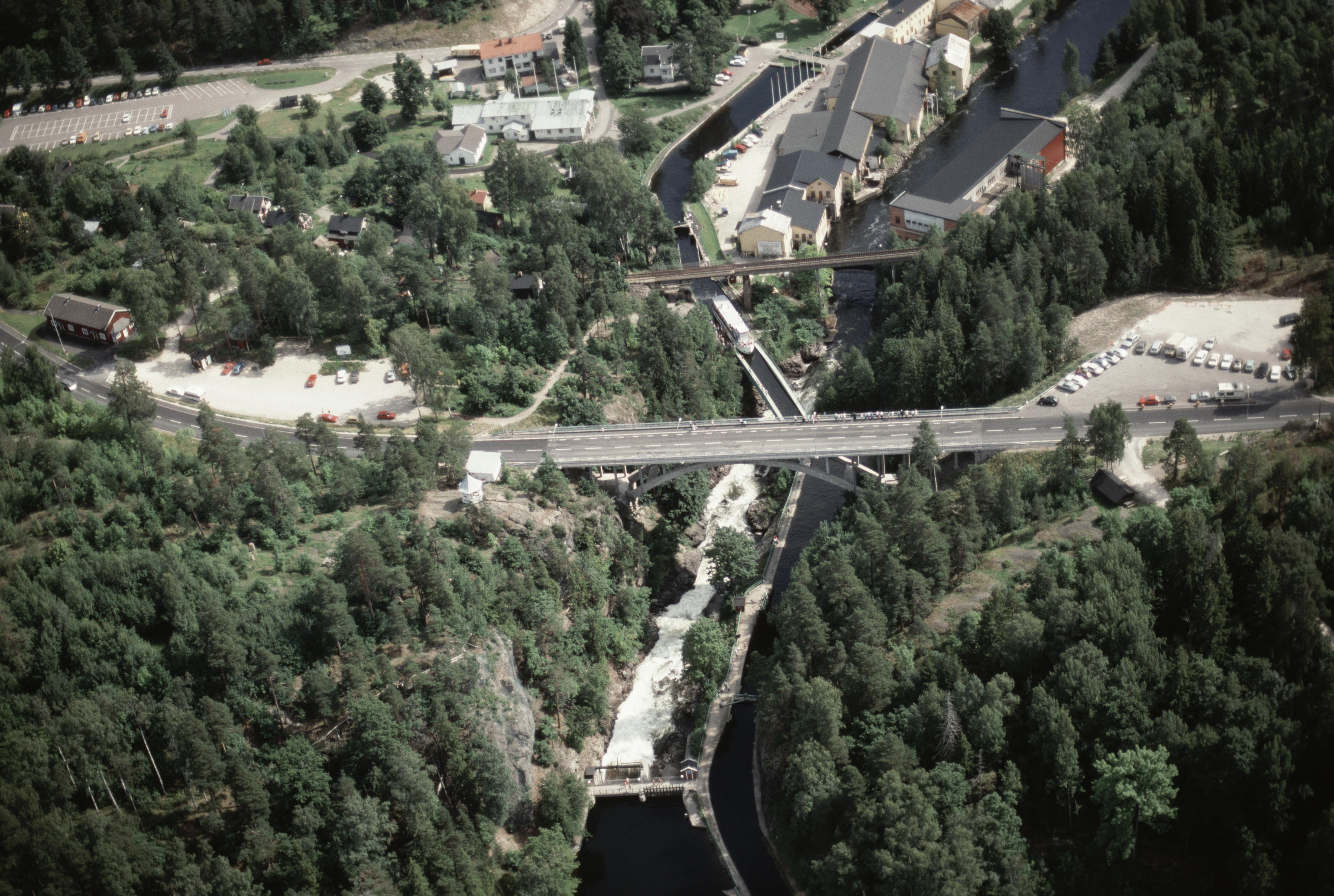 Beskrivning: Dalslands kanal vid byn Håverud, mellan sjöarna Åklång i väst och Övre Upperudshöljen i öst. Bro, järnvägsbro, akvedukt och sluss. Minnesmärke RAÄnr Skållerud 33:1-2. Bilden är tagen mot (väderstreck): Ö