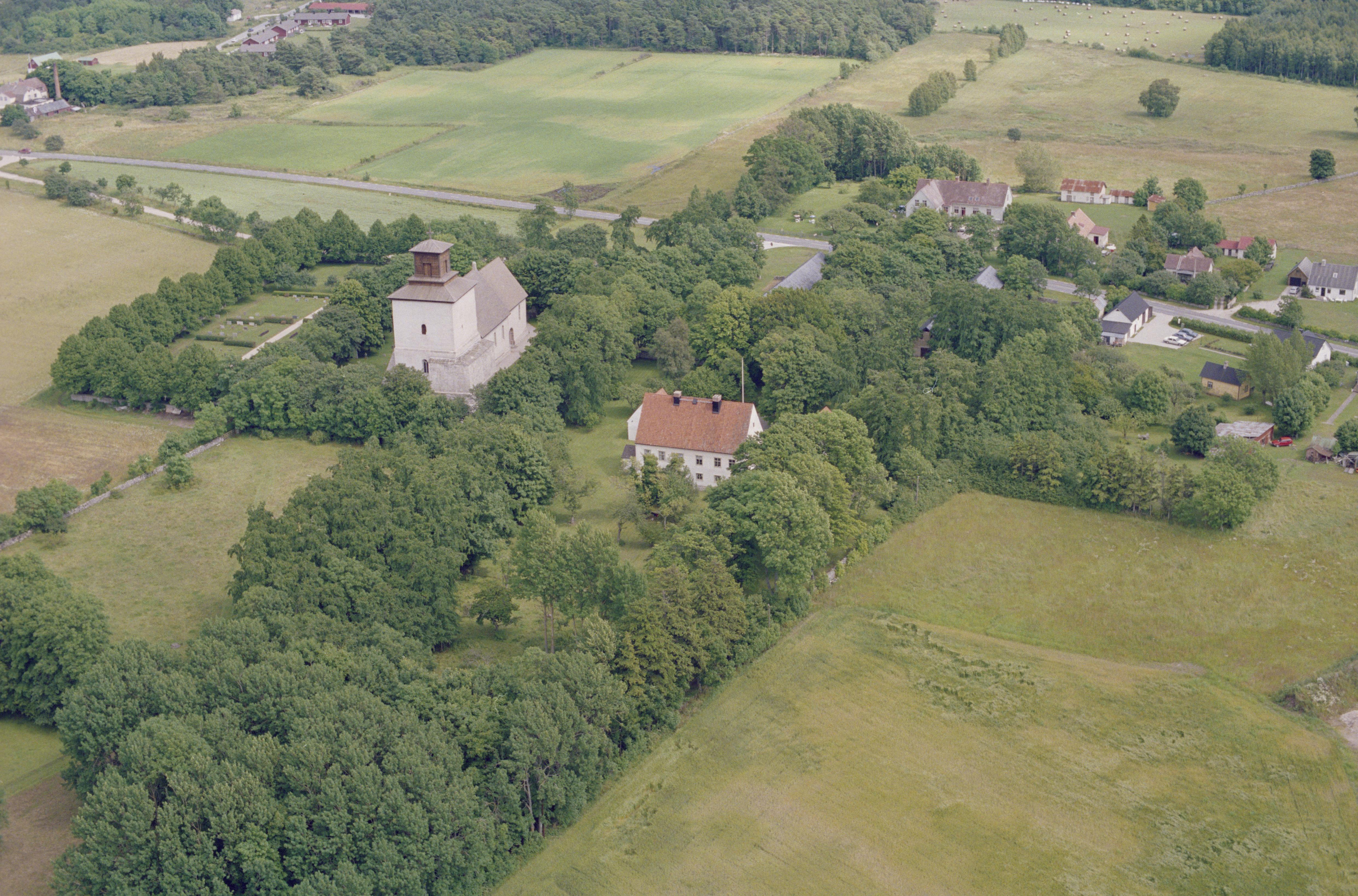 Beskrivning: Vamlingbo kyrka och prästgård i bytomt RAÄnr Vamlingbo 64:1. Bilden är tagen mot (väderstreck): NO