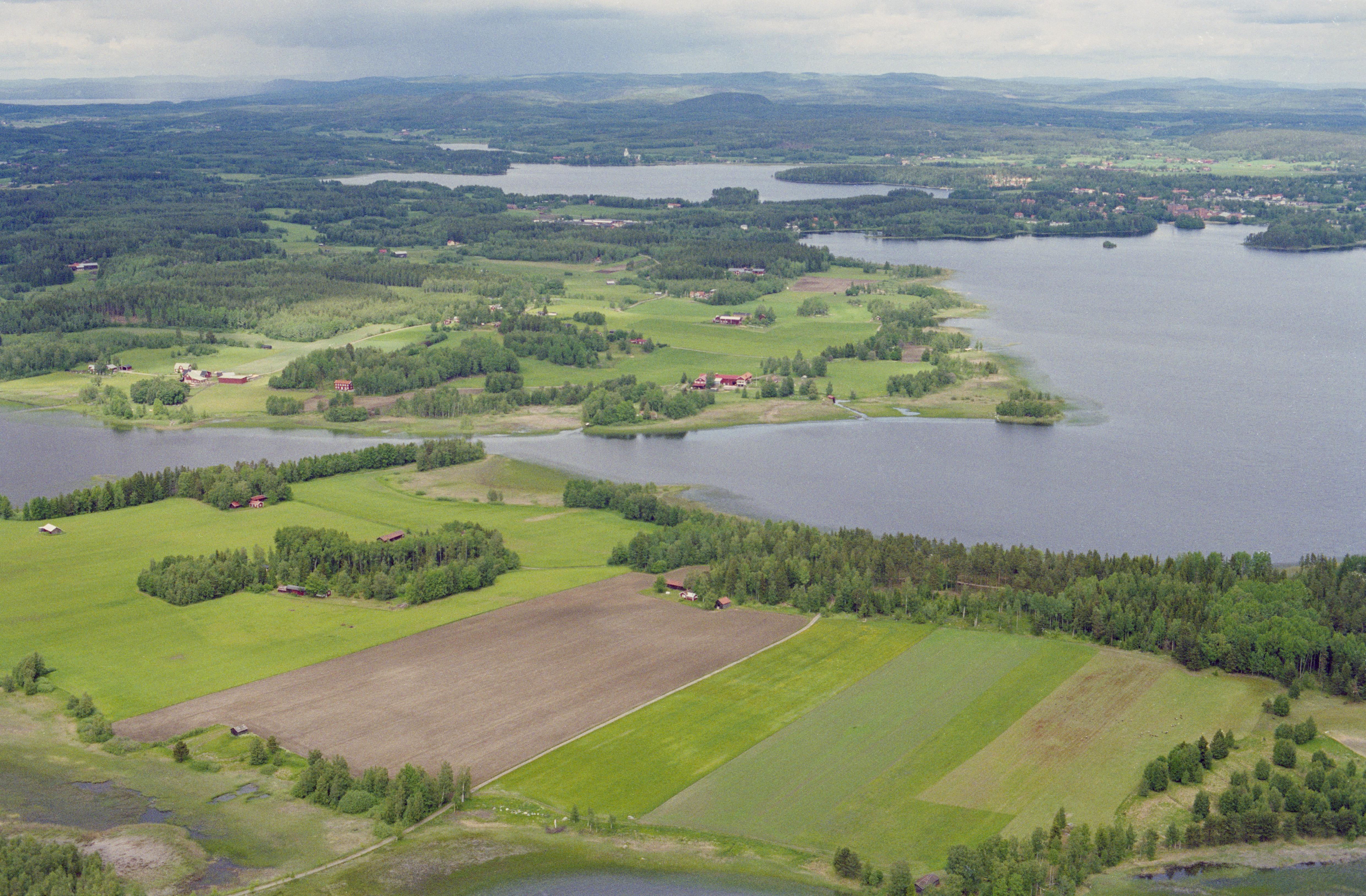 Beskrivning: Långsjön vid sundet mellan Storön (i bildens nedre del) och Utnäs (över bildens mitt). På Storön, till höger under bildens mitt, en kolningsanläggning RAÄnr Forsa 643. I bildens övre del Forsa kyrkby vid Kyrksjön. Bilden är tagen mot (väderstreck): N