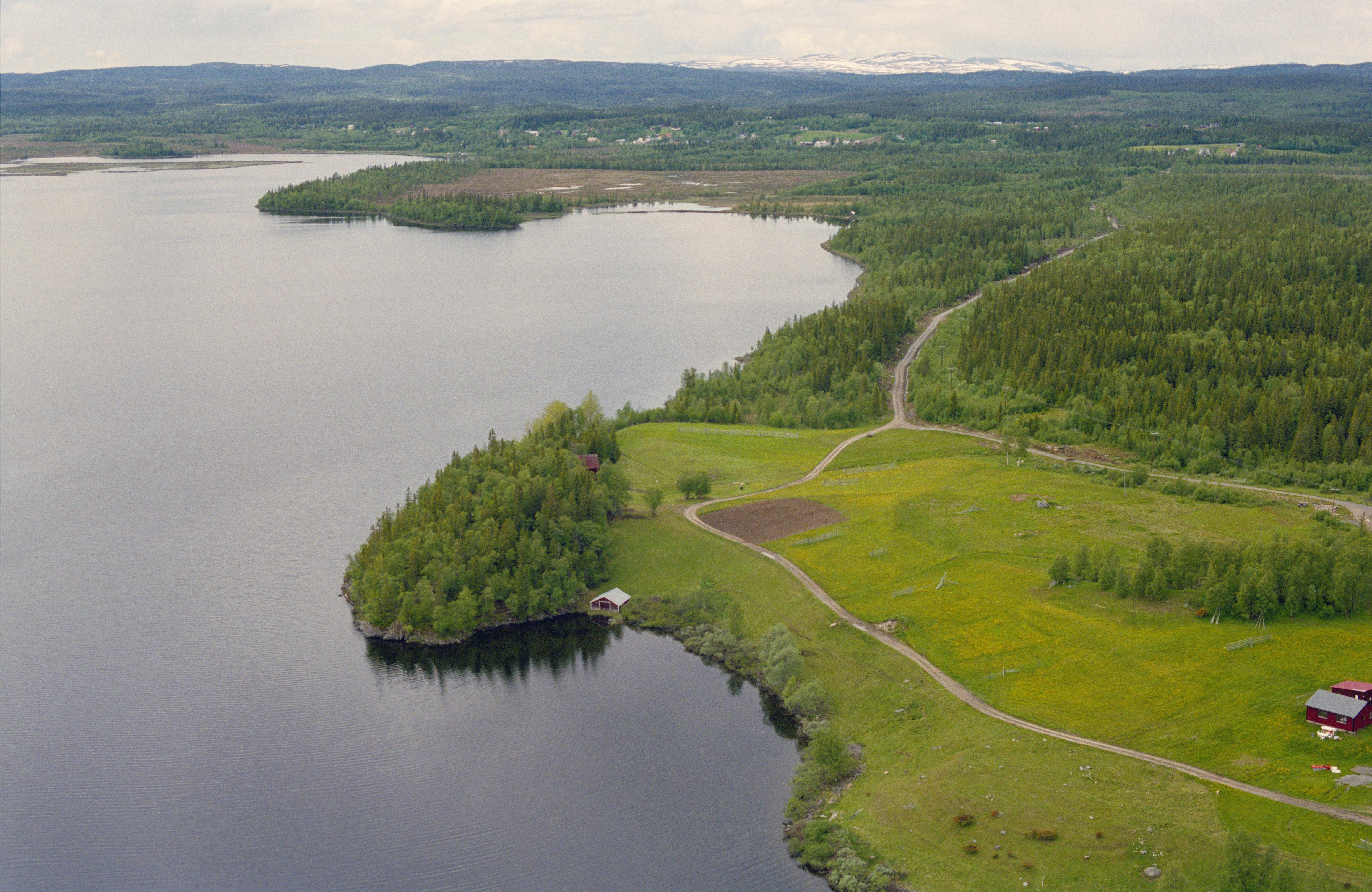 Beskrivning: Ånnsjön, norra delen vid Indalsälven. Till höger Landverks by med bytomt och fossil åker RAÄnr Åre 151:1-2. Vid udden Berget i bildens mitt boplats RAÄnr Åre 5:1 och hällristningar Åre 1:1-2. Bilden är tagen mot (väderstreck): VNV