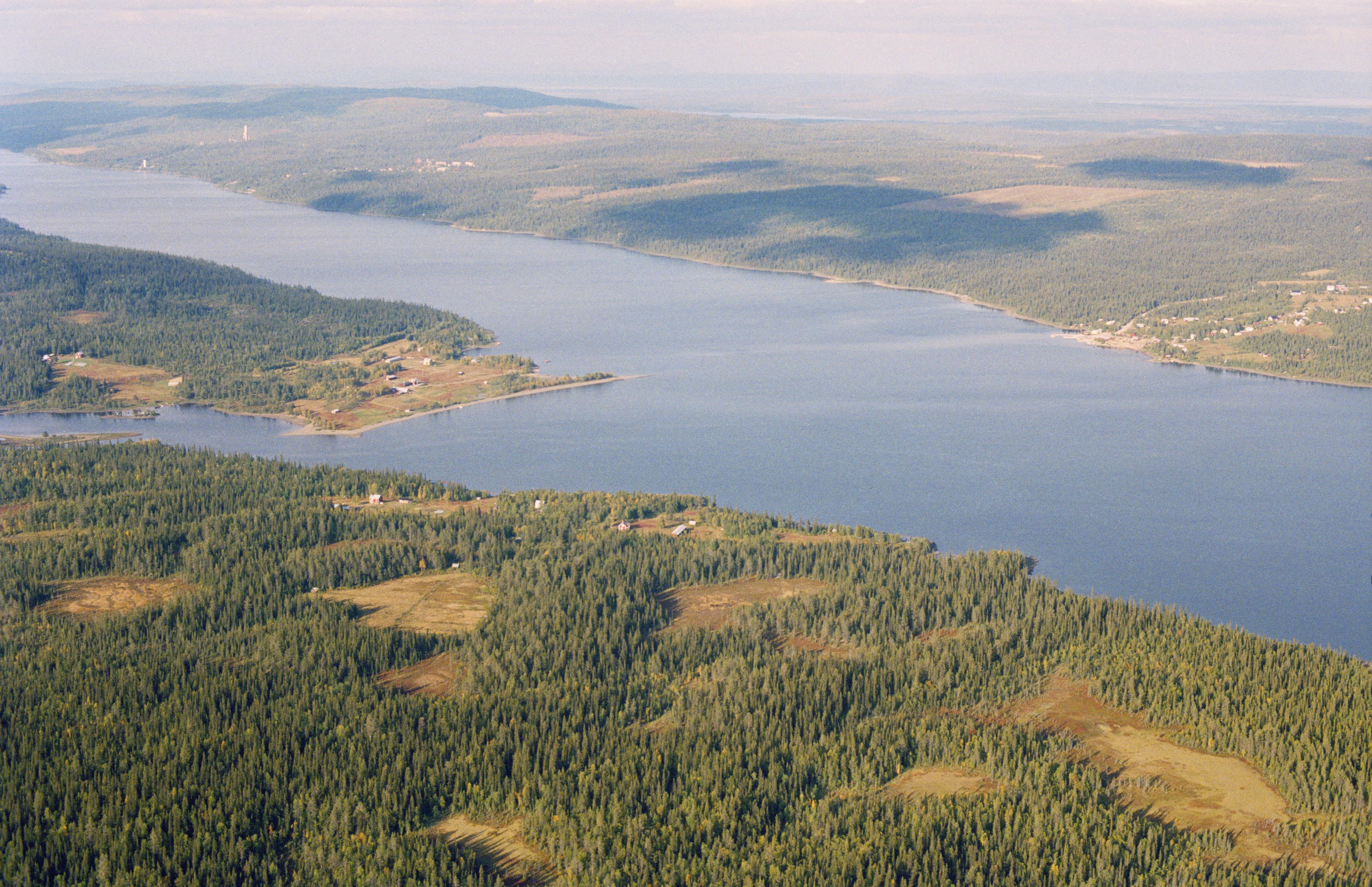 Beskrivning: Laisälven (Lájsso). I bildens nedre del områdena Kramaviken och Västra Laisvall. Till höger Laisvallby. Uppe till vänster gruvsamhället Laisvall (Lájsogädde). Vid Västra Laisvall till vänster om bildens mitt fossil åker RAÄnr Arjeplog 916:1, m.fl. Bilden är tagen mot (väderstreck): NO