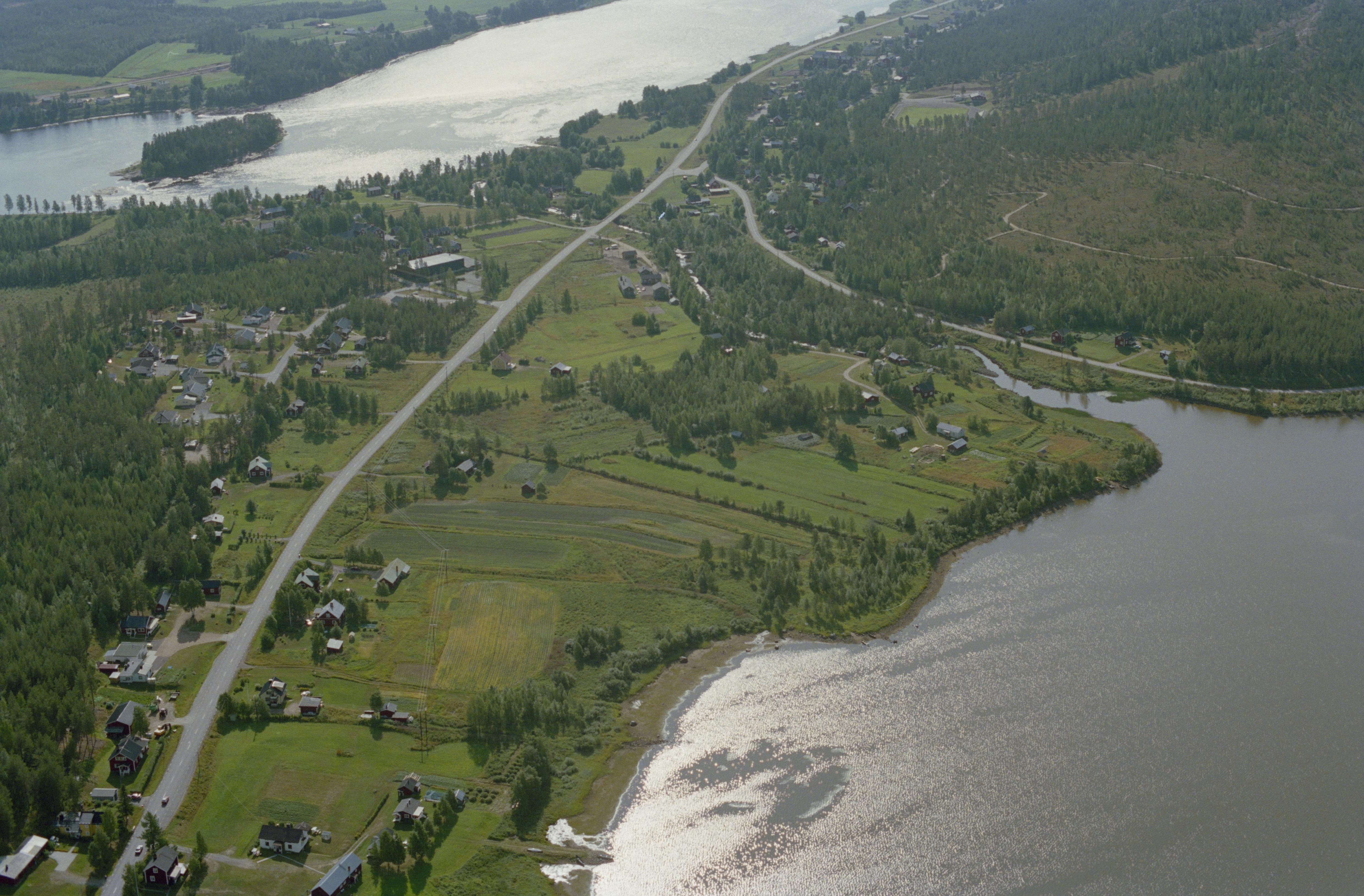 Beskrivning: Orten Svanstein i Tornedalen. Uppe till höger ån Kuittasjoki mellan sjön Kuittasjärvi (i bildens nedre del) och Torneälven. Till höger om bildens mitt boplats RAÄnr Övertorneå 455:1 och vid åns mynning sågbrukslämning Övertorneå 6:1. Svansteins kyrka skymtar uppe till höger. Torneälven markerar riksgränsen mot Finland (i bildens övre del). Bilden är tagen mot (väderstreck): SO