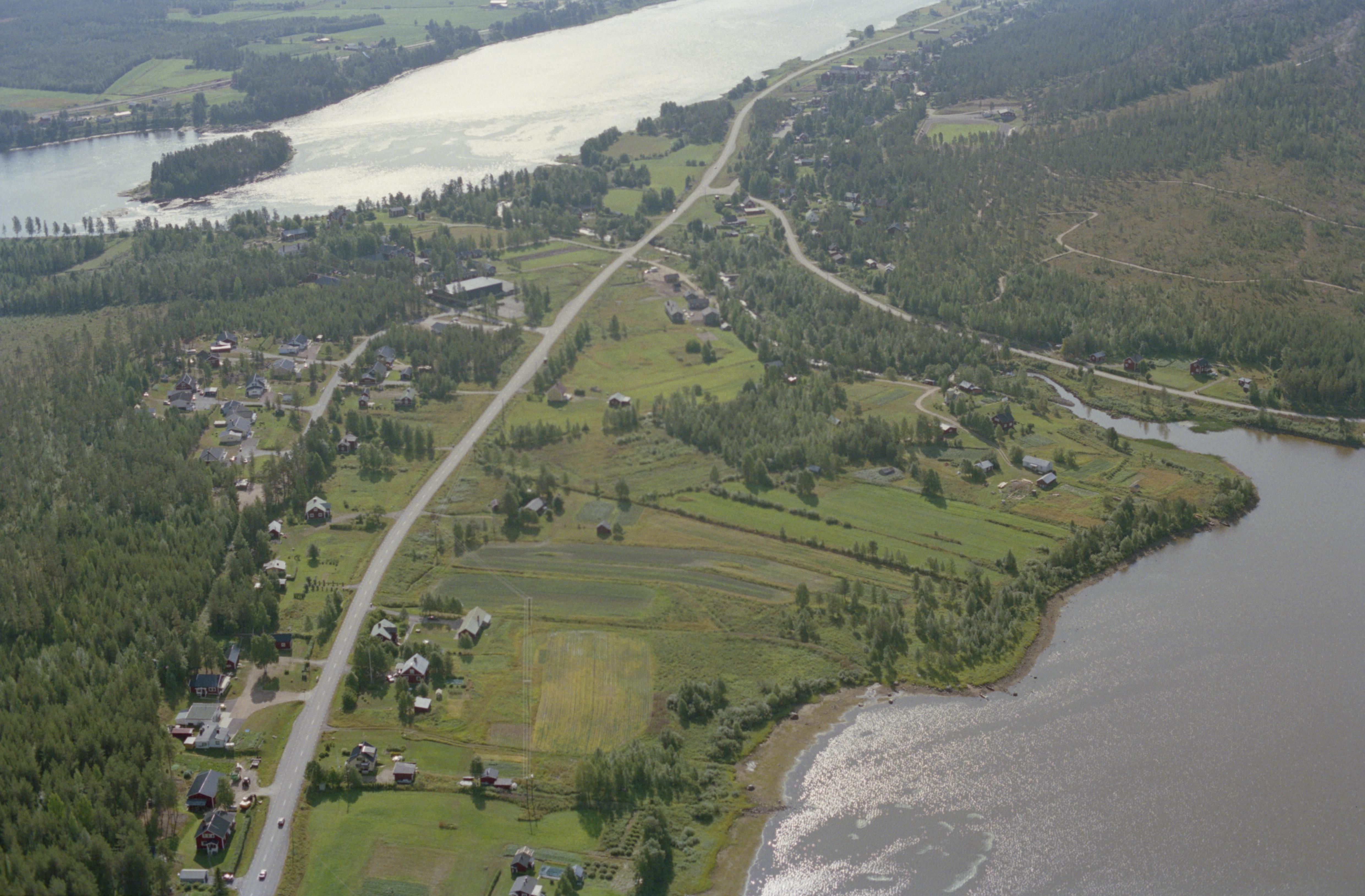 Beskrivning: Orten Svanstein i Tornedalen. Uppe till höger ån Kuittasjoki mellan sjön Kuittasjärvi (i bildens nedre del) och Torneälven. Till höger om bildens mitt boplats RAÄnr Övertorneå 455:1 och vid åns mynning sågbrukslämning Övertorneå 6:1. Svansteins kyrka skymtar uppe till höger. Torneälven markerar riksgränsen mot Finland (i bildens övre del). Bilden är tagen mot (väderstreck): SO
