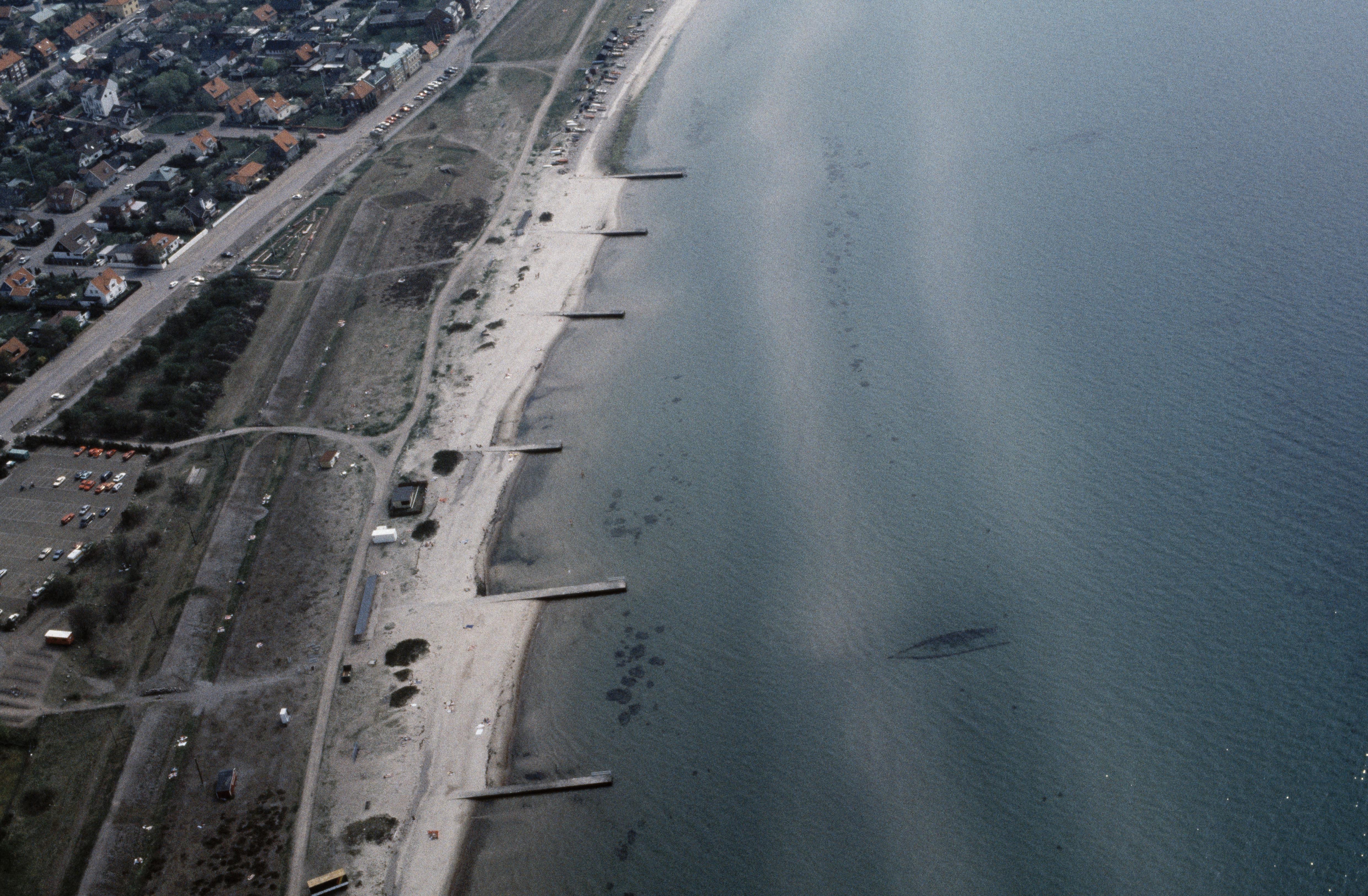 Beskrivning: (Tidigare Raus socken). Råå vallar RAÄnr Helsingborg 92:1. Ett skeppsvrak i vattnet. Bilden är tagen mot (väderstreck): SO