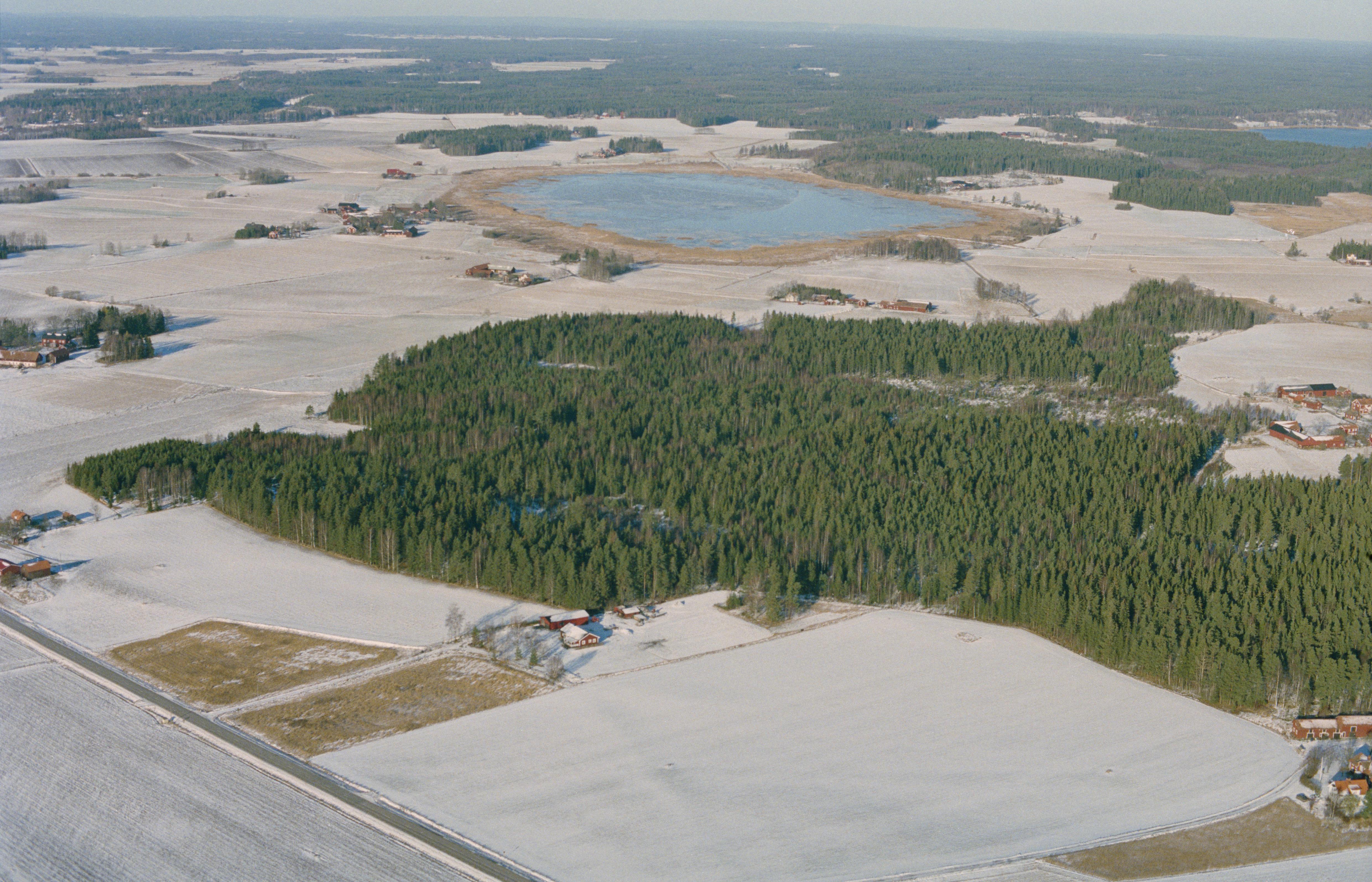Beskrivning: Gussjö by. Över bildens mitt fornlämningsområde med runristning RAÄnr Fläckebo 2:1, hällristning Fläckebo 218, husgrund Fläckebo 46:1 m.fl. söder om Gussjön. Bilden är tagen mot (väderstreck): N