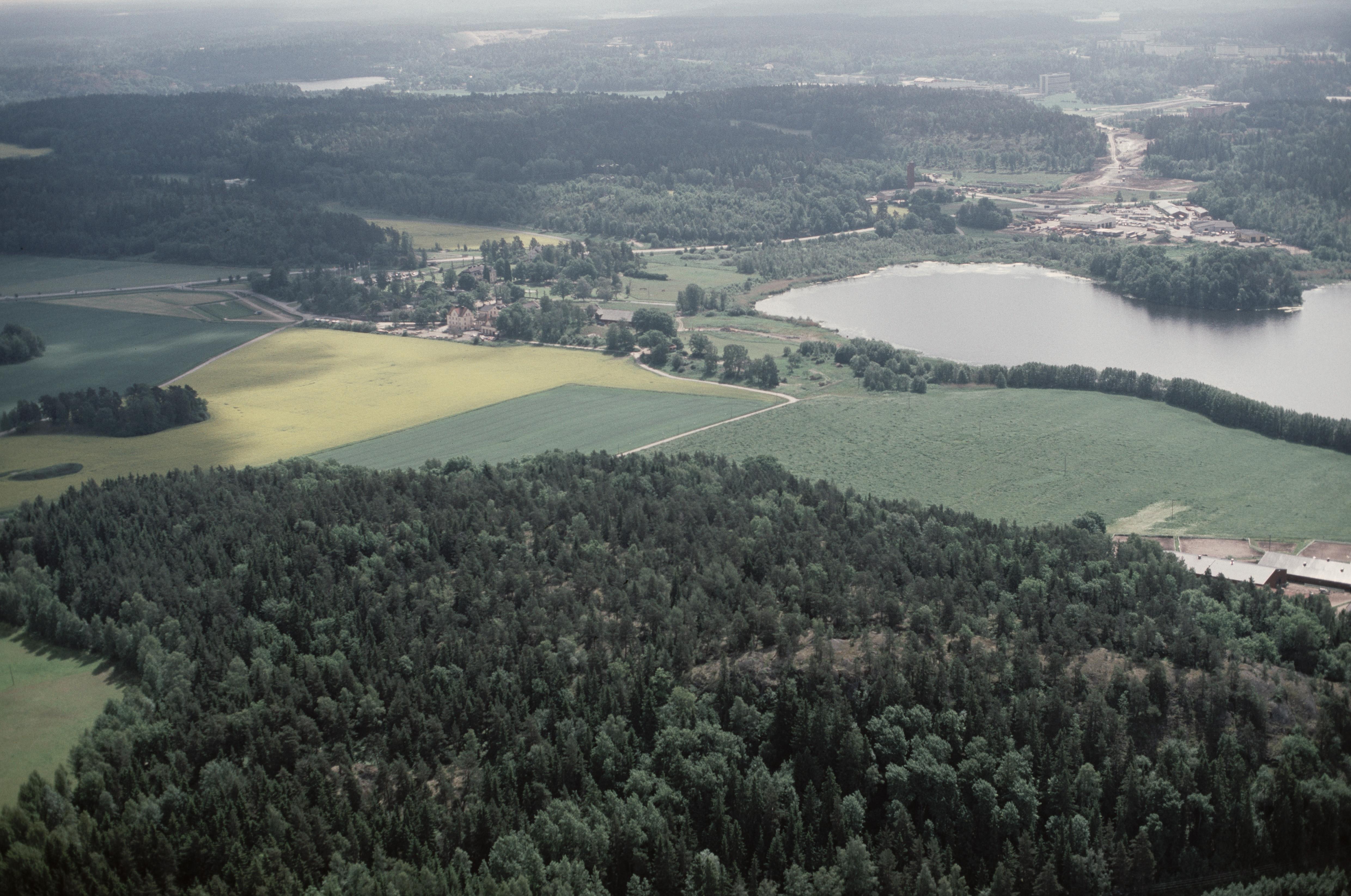 Beskrivning: I bildens nedre del området vid Skrävsta herrgård med Skrävsta gamla tomt RAÄnr Botkyrka 101:1 m.fl. Vid bildens mitt Hågelby herrgård vid sjön Aspen. Bilden är tagen mot (väderstreck): SO