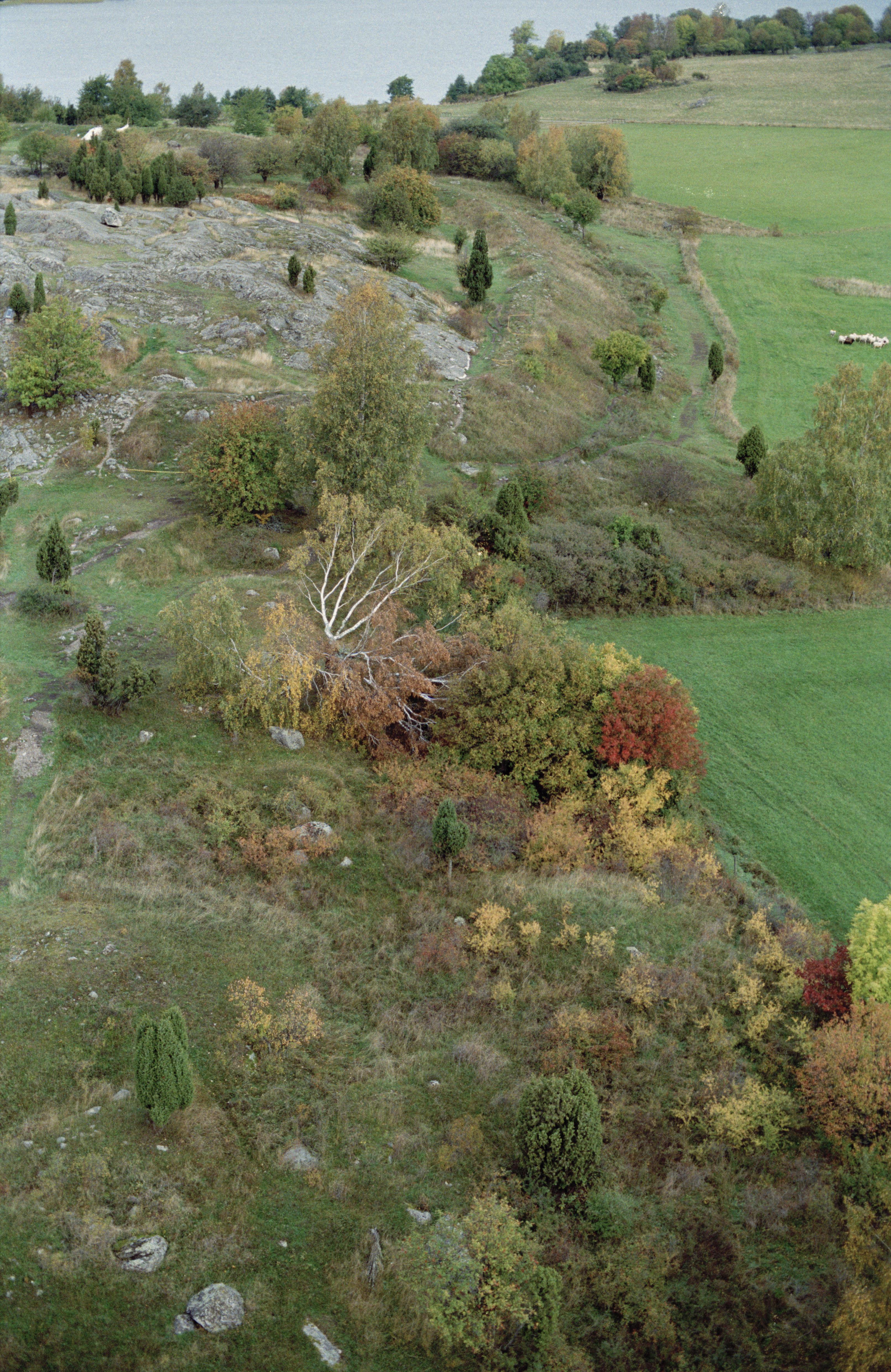 Beskrivning: Anmärkning (övrig): Riksintresse-nr/namn: AB21 och AB22 - Adelsö - Björkö-Birka. Socken: Adelsö. Motivering: Fornlämningsmiljö med kungsgården och Alsnö hus på Adelsö, och på Björkö platsen för Sveriges första stadsbildning (Birka), som visar på östra Mälardalens centrala roll för det svenska riket under järnåldern och den tidiga medeltiden, den politiska och ekonomiska makten och regionens handelsutbyte med internationell räckvidd. - Uttryck för riksintresset: På Adelsö Hovgårdskomplexet, som i storhögar, flera stora gravfält, stora husgrundsterrasser, hamnanläggning, fornborgen och en runsten samt i 1100-talskyrkan och ruinen av Alsnö hus visar på järnålderns kungsgård och dess fortsättning under medeltiden.(…) Texten i detta fält har förkortats vid migrering till e-arkivet. Se filbilagan extra.xml för fullständig information under note_archivist. Beskrivning: Fornlämningsområdet Birka på Björkö i Mälaren. Stigar i gravfält Borgs hage RAÄnr Adelsö 35:1 vid fornborg Borg RAÄnr Adelsö 34:1. Bilden är tagen mot (väderstreck): NNV Fotosyfte: Flygbildsdokumentation