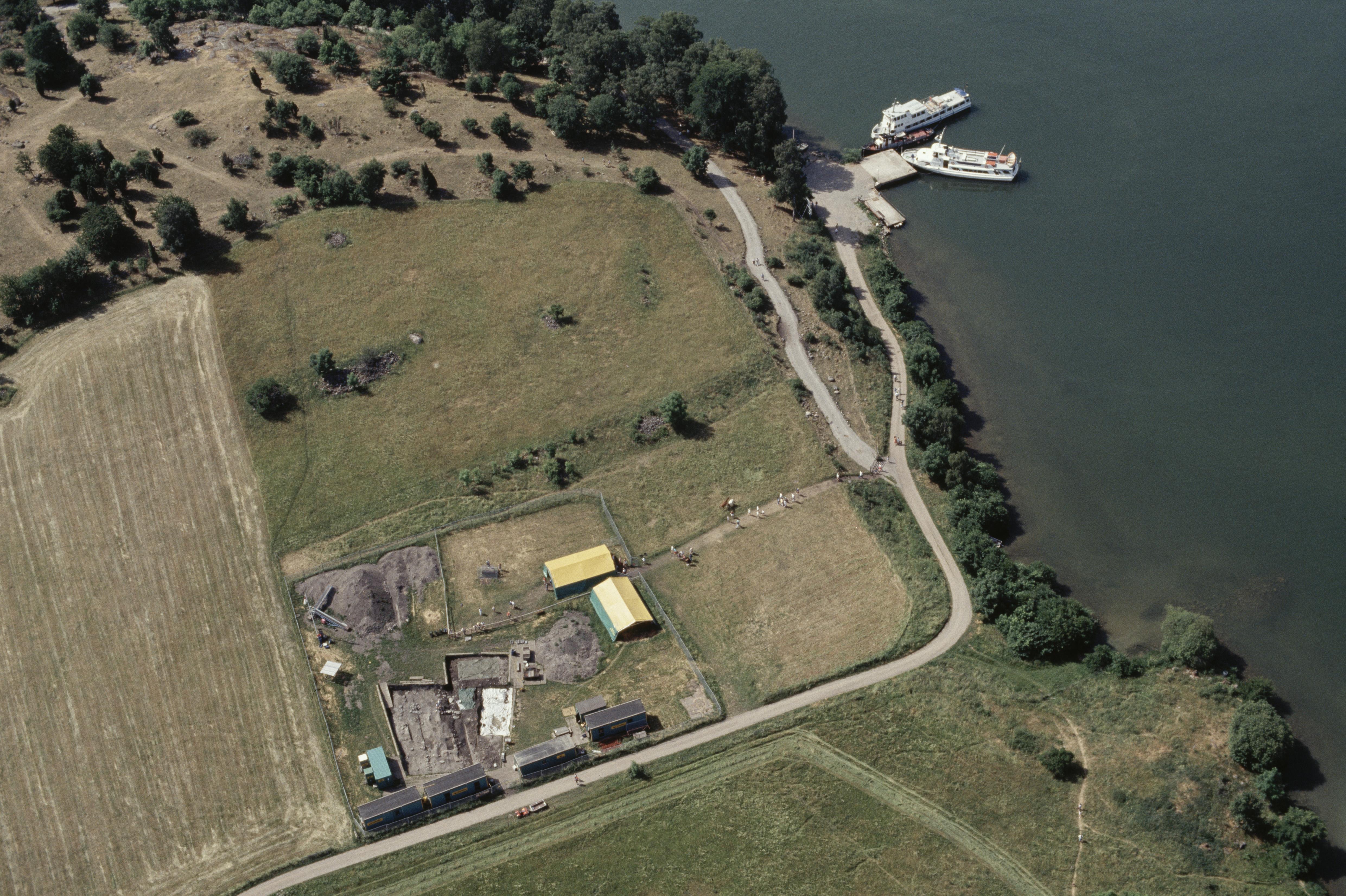 Beskrivning: Fornlämningsområdet Birka på Björkö i Mälaren. Arkeologisk undersökning i norra delen av ön i området Hemlanden och Svarta jorden RAÄnr Adelsö 118:1 vid Stadsvallen Adelsö 119:1-2. Bilden är tagen mot (väderstreck): SV