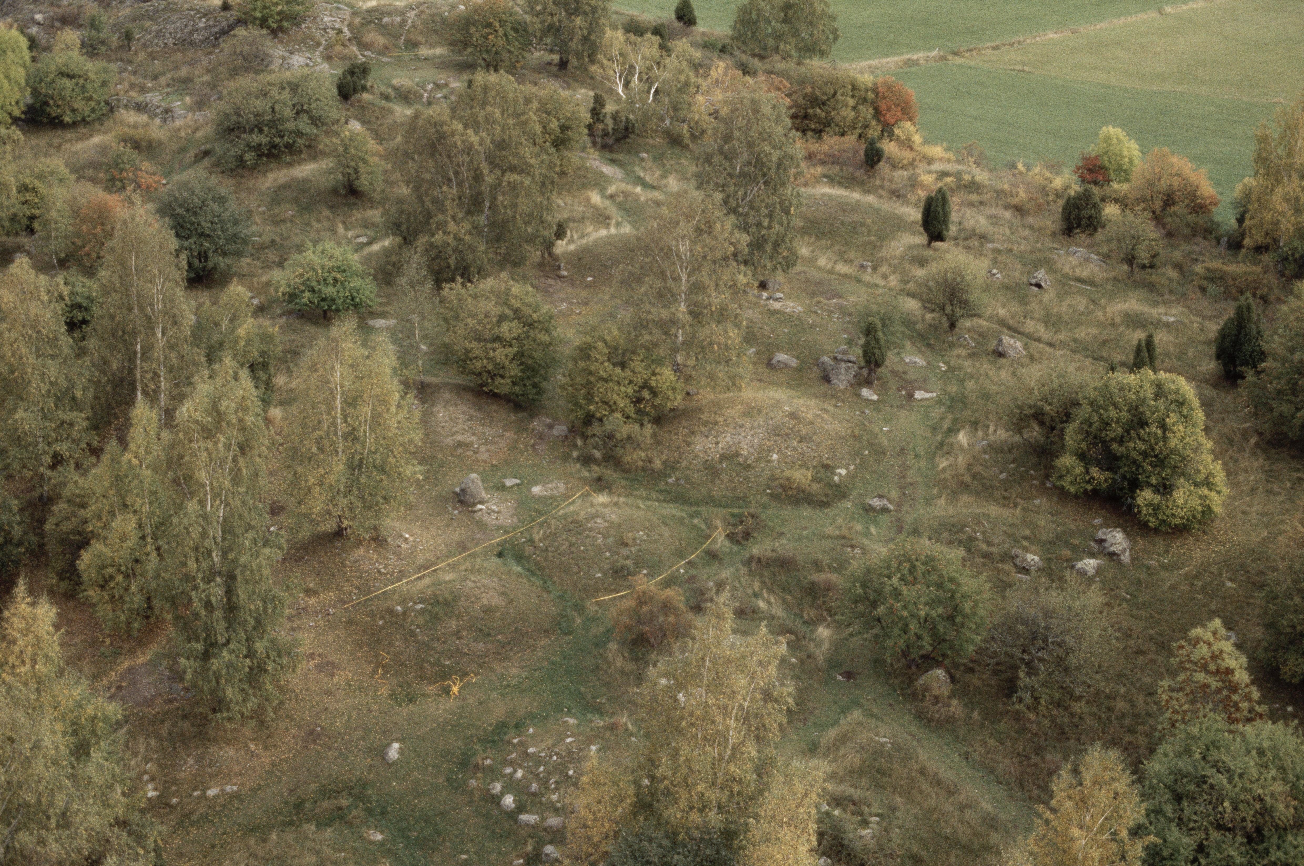 Beskrivning: Fornlämningsområdet Birka på Björkö i Mälaren. Gravfält Borgs hage RAÄnr Adelsö 35:1 vid fornborg Borg RAÄnr Adelsö 34:1. Bilden är tagen mot (väderstreck): N