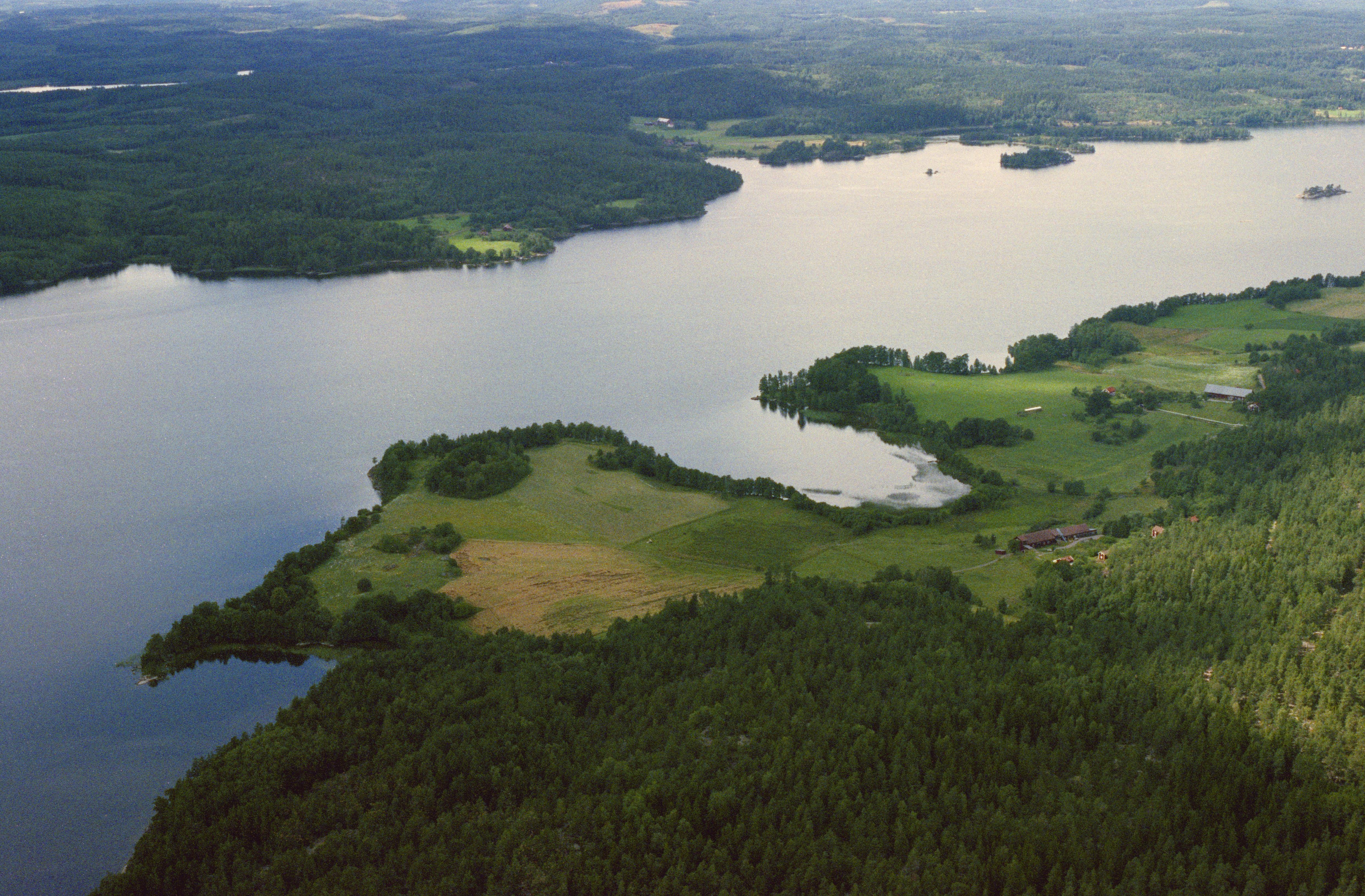 Beskrivning: Jätteudden vid sjön Åsunden. Gravfält med skeppssättning, och domarring RAÄnr Horn 15:1. Bilden är tagen mot (väderstreck): SV