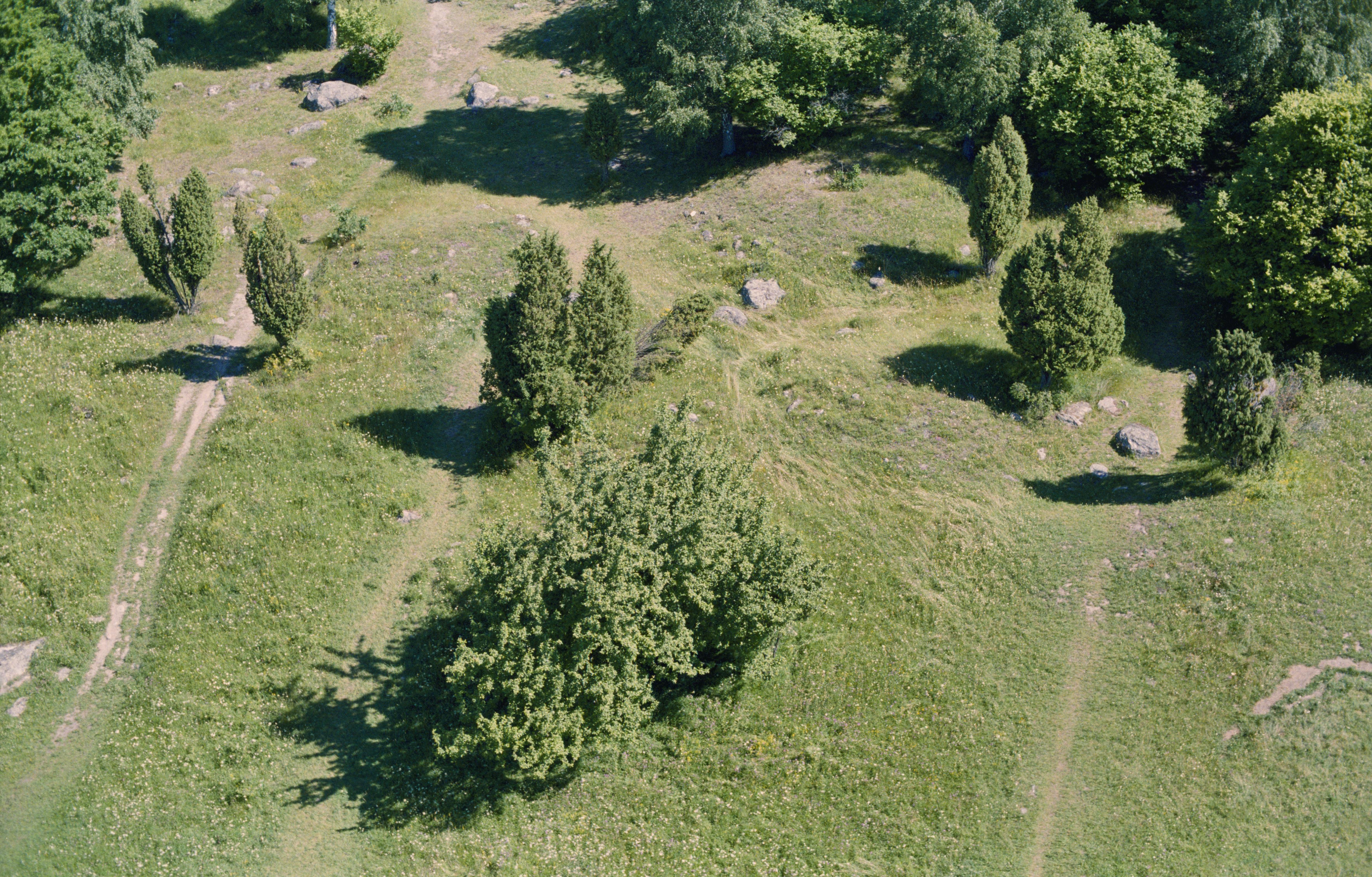 Beskrivning: Fornlämningsområdet Birka på Björkö i Mälaren. Fornborg Borg RAÄnr Adelsö 34:1 i området Garnisonen vid Ansgarsmonumentet och gravfält Borgs hage Adelsö 35:1. Bilden är tagen mot (väderstreck): N