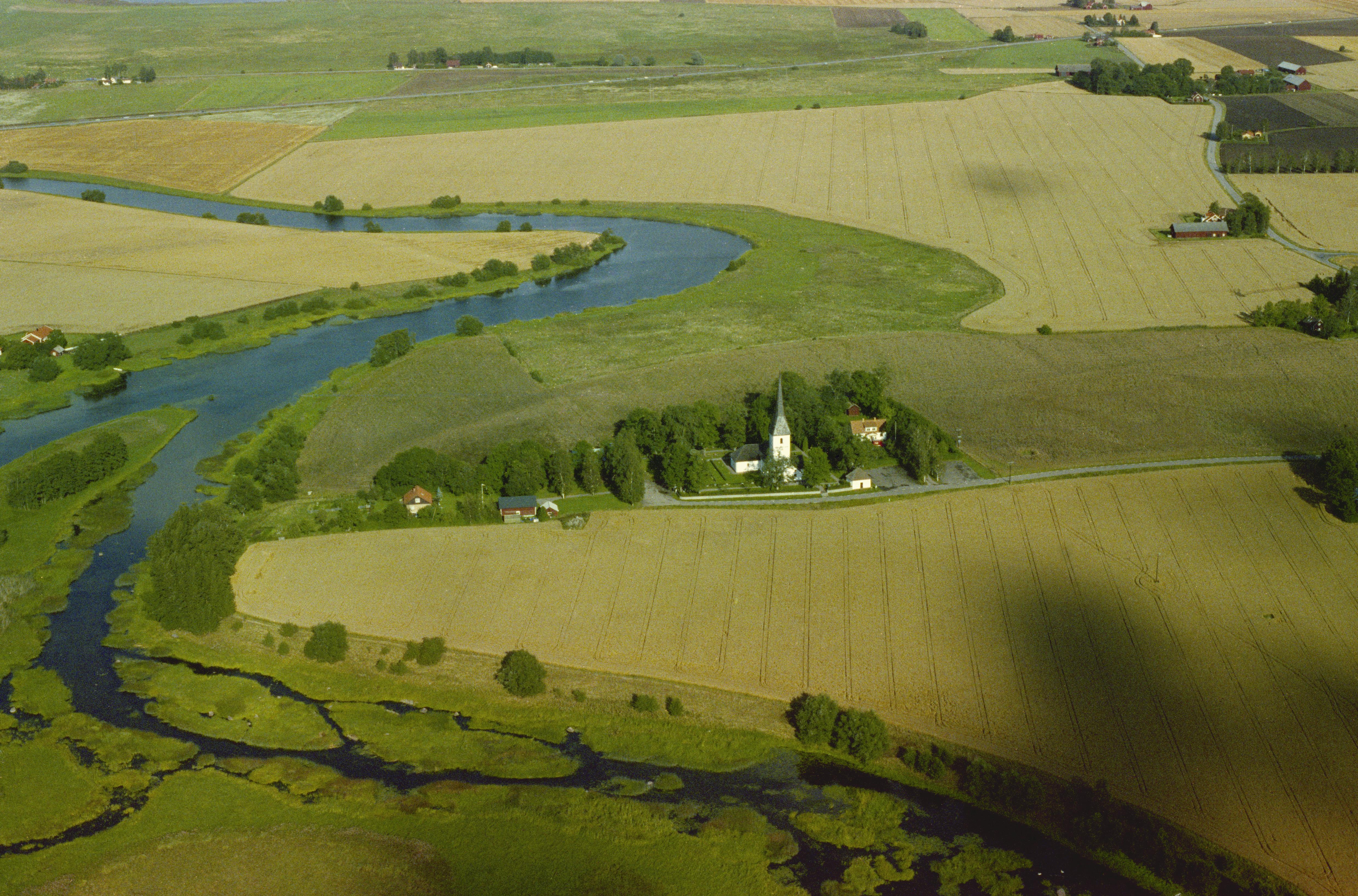 Beskrivning: Svartåns dalgång. Kaga kyrka vid Svartån. Bilden är tagen mot (väderstreck): Ö