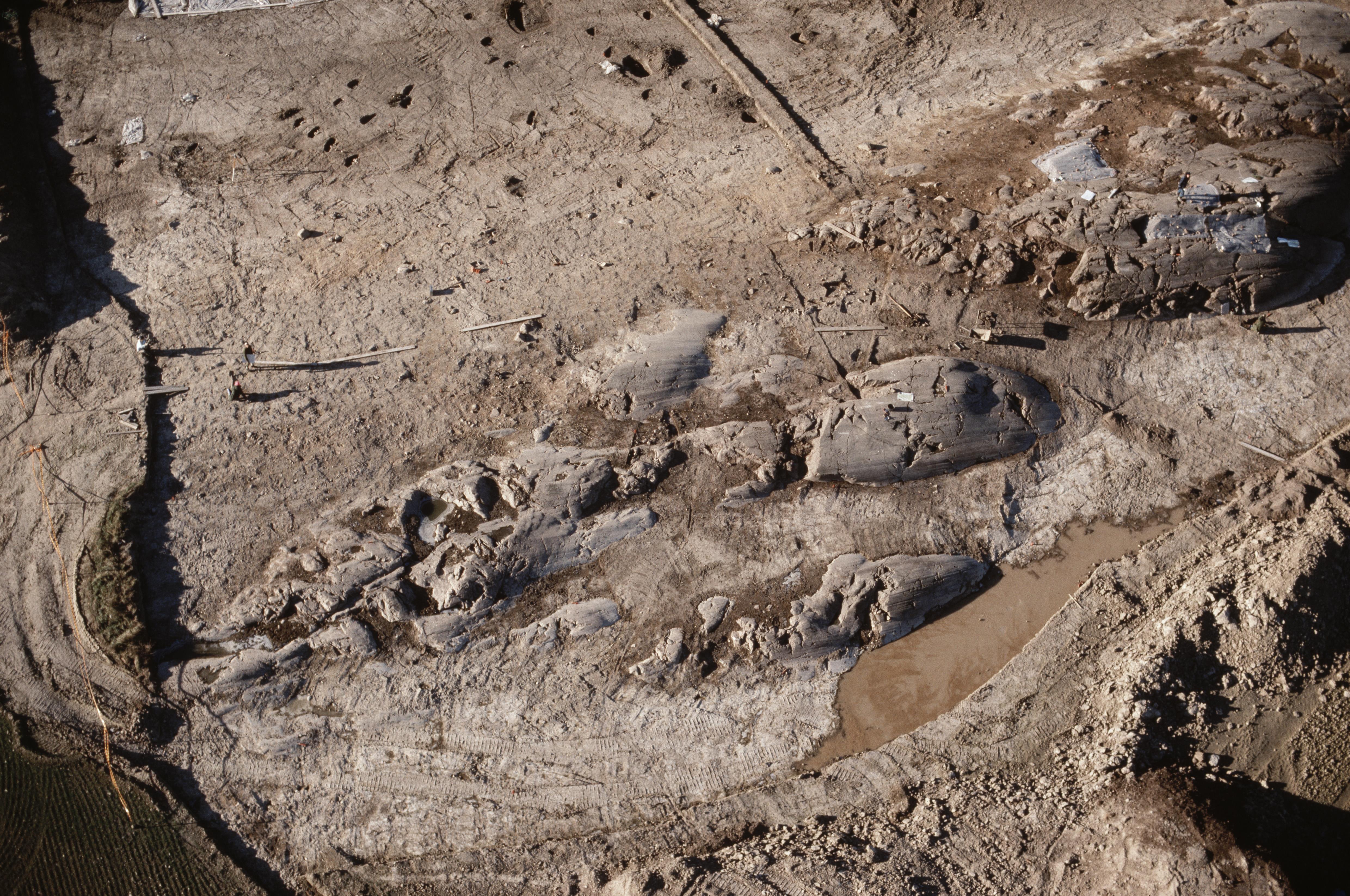 Beskrivning: Arkeologiska undersökningar av hällristning RAÄnr Borg 50:1 och 51:1 (i tidigare Borgs socken) innan bygge av väg E4 vid Stora Herrebro - Skälv. Bilden är tagen mot (väderstreck): V