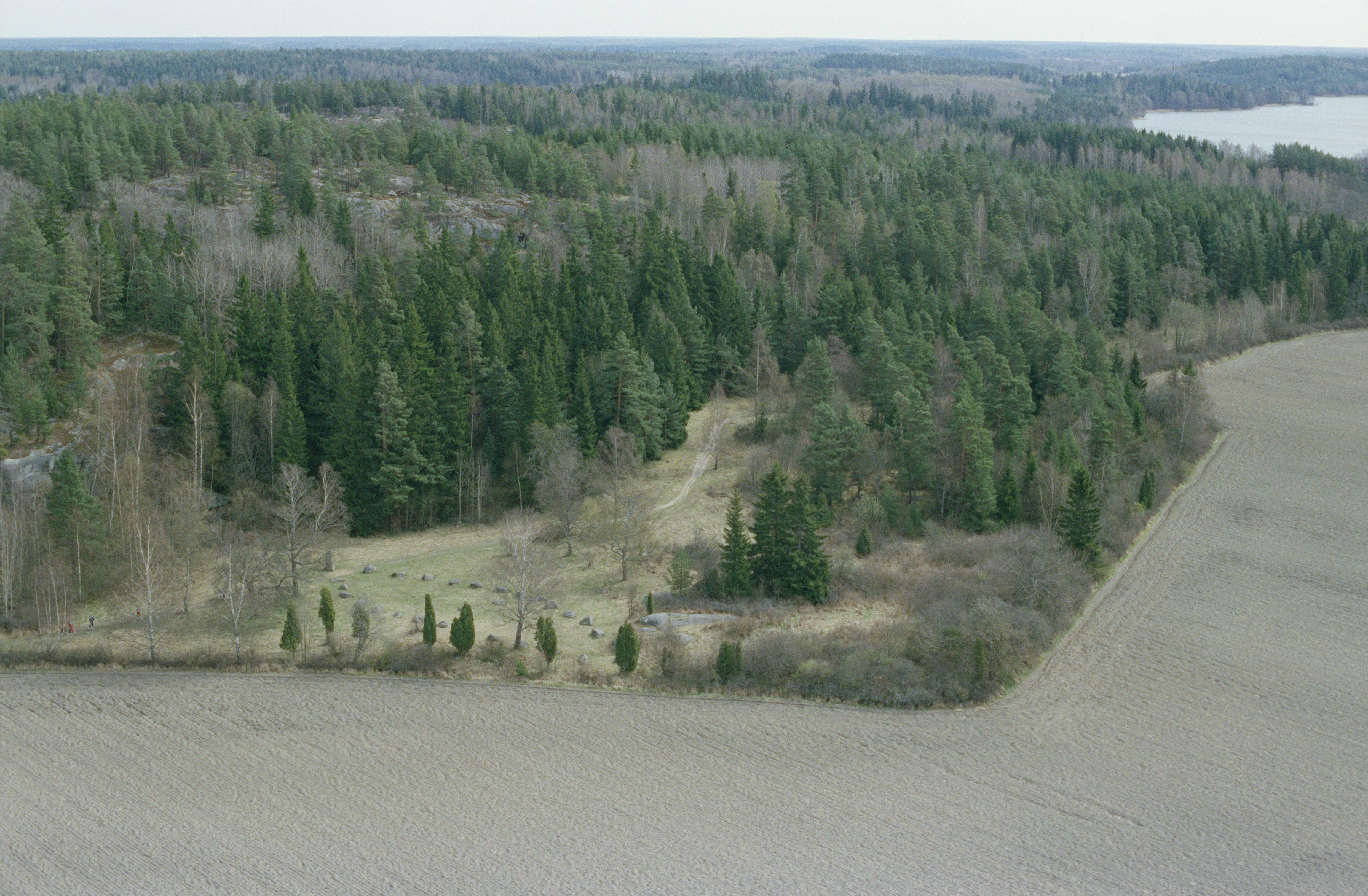 Beskrivning: Runsa gravfält med skeppssättning RAÄnr Ed 1:1. Bilden är tagen mot (väderstreck): Ö