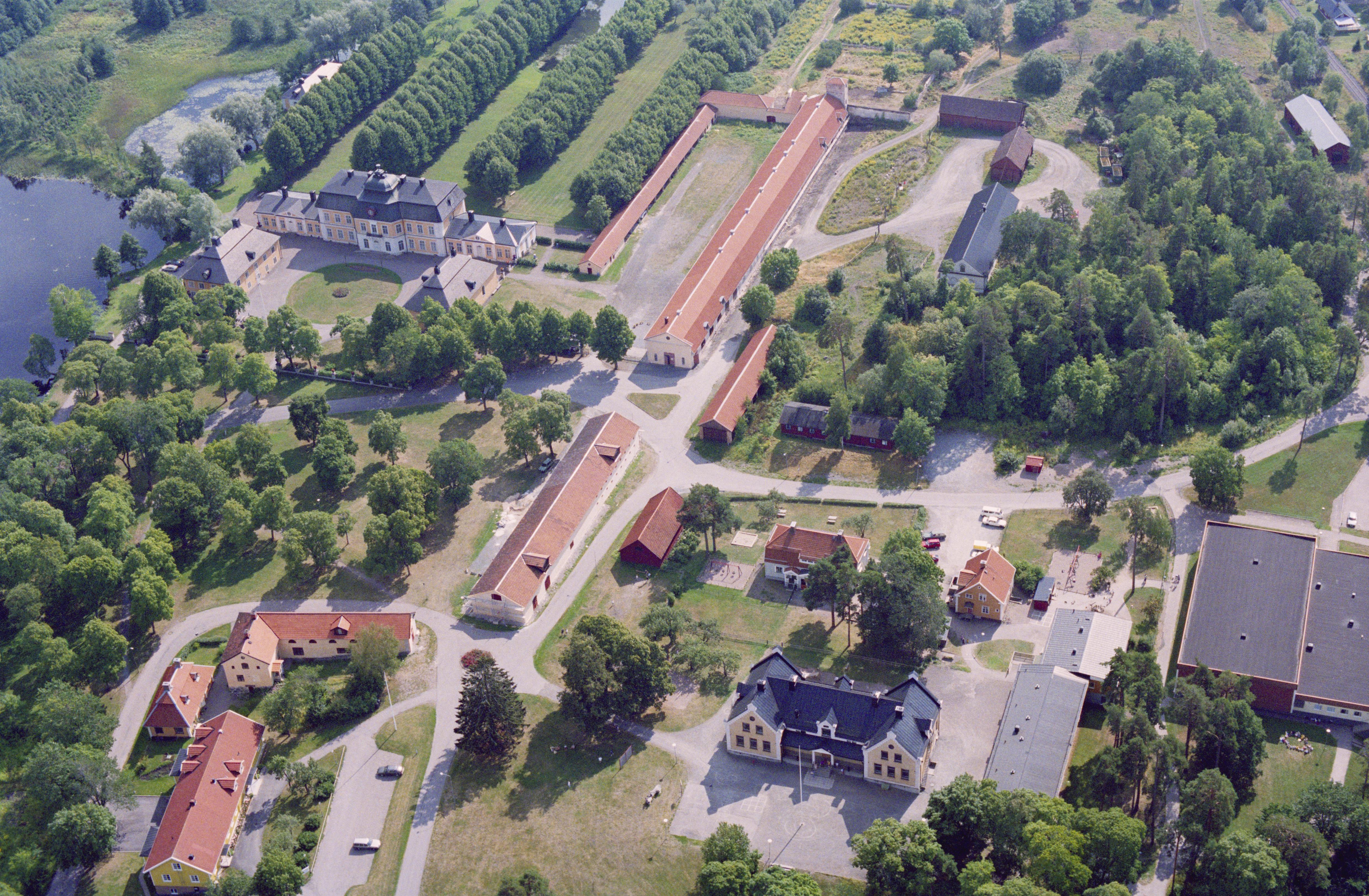 Beskrivning: Österbybruk vid Nerån. Bruksområde med herrgård och kyrka samt smedje-, kvarn-, hammar- och hyttlämningar m.m. RAÄnr Film 81:1. Till vänster om bildens mitt Österbybruks herrgård och kyrka vid Herrgårdsdammen, Bilden är tagen mot (väderstreck): SO