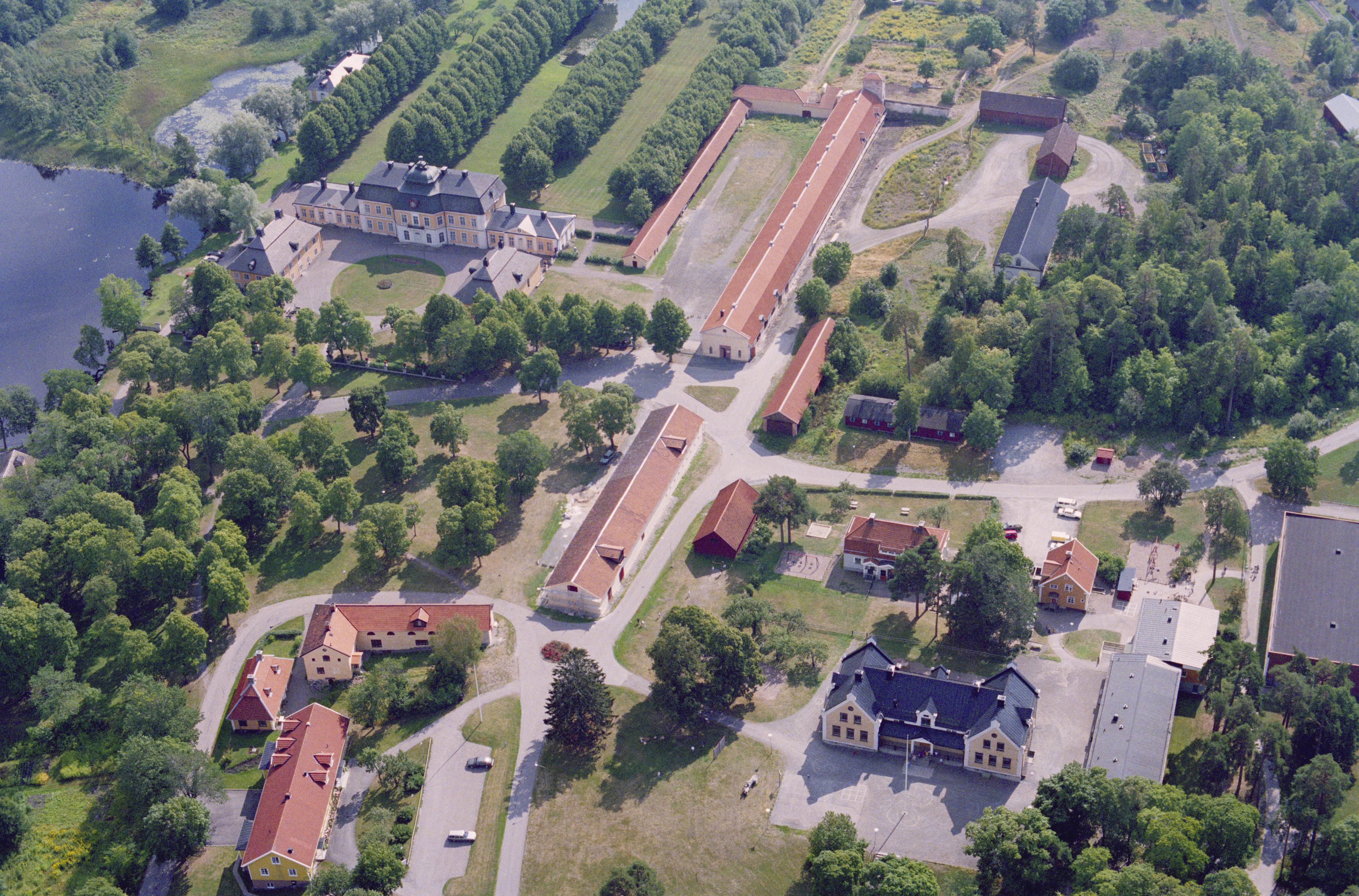 Beskrivning: Österbybruk vid Nerån. Bruksområde med herrgård och kyrka samt smedje-, kvarn-, hammar- och hyttlämningar m.m. RAÄnr Film 81:1. Till vänster om bildens mitt Österbybruks herrgård och kyrka vid Herrgårdsdammen, Bilden är tagen mot (väderstreck): SO