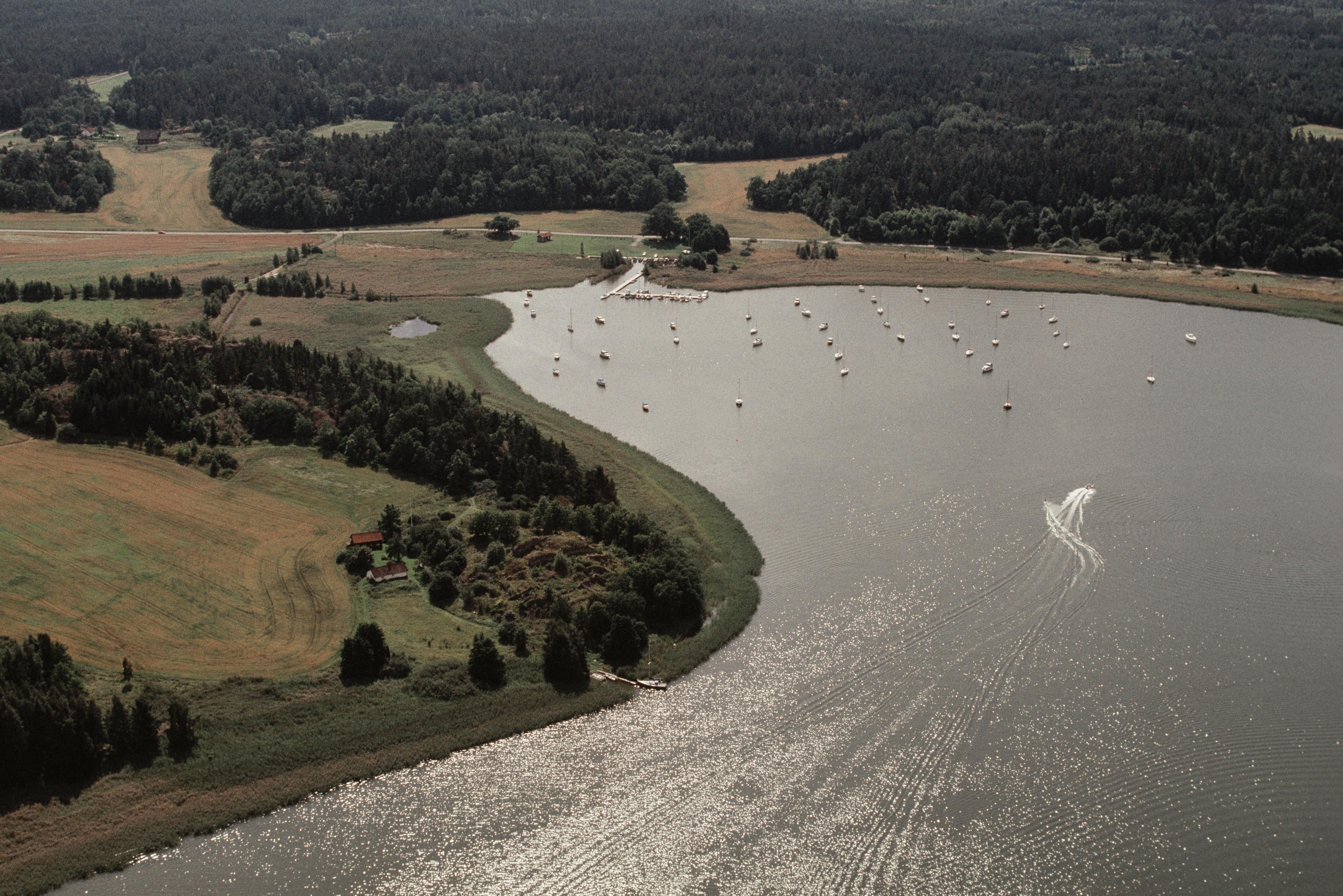 Beskrivning: Havsviken Slätbaken. Skällviks borgruin RAÄnr Skällvik 1:1 vid Yxeltorpa vik. Bilden är tagen mot (väderstreck): S