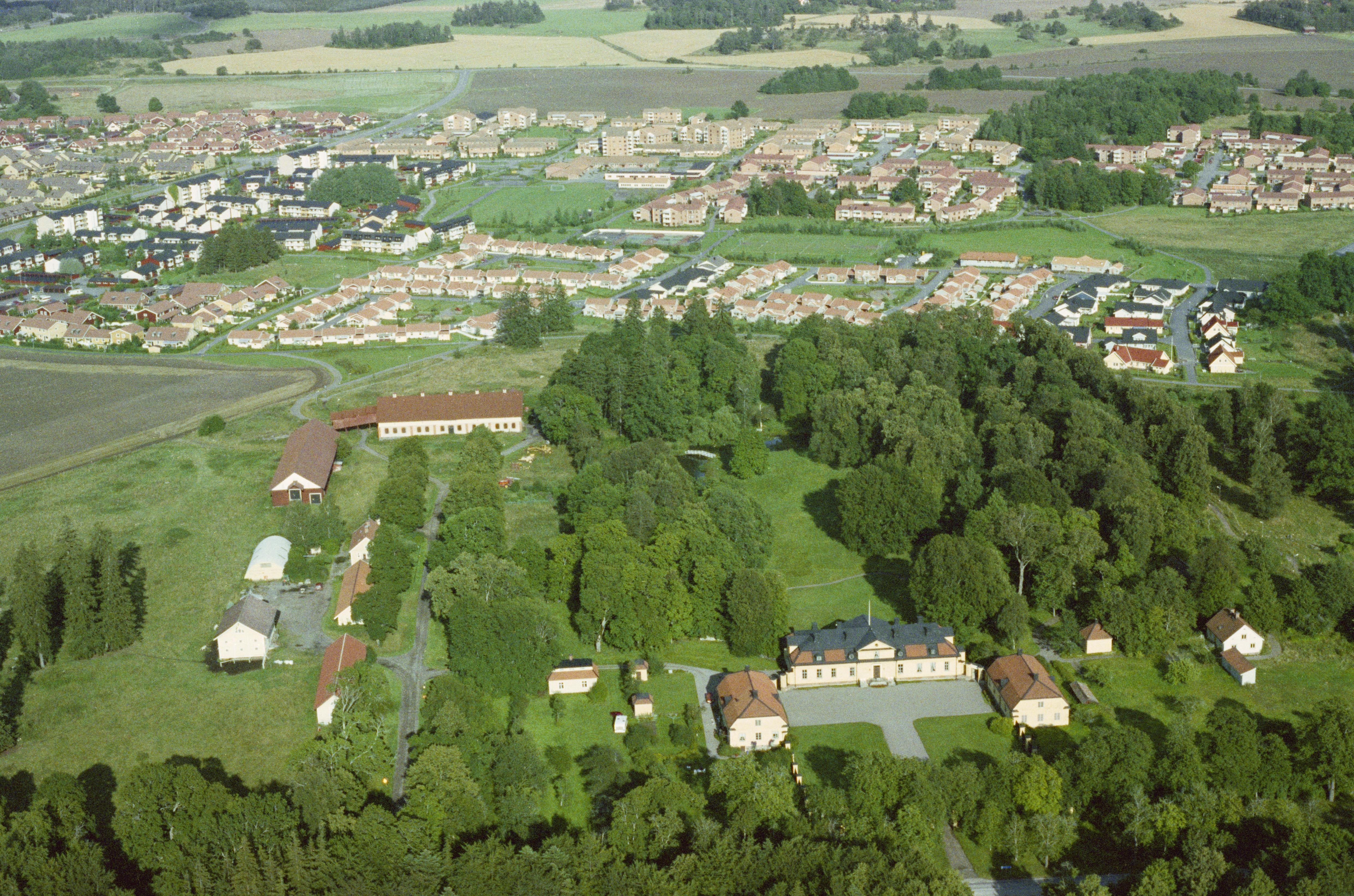Beskrivning: Lambohov. Lambohovs herrgård / säteri under bildens mitt. Bilden är tagen mot (väderstreck): Ö
