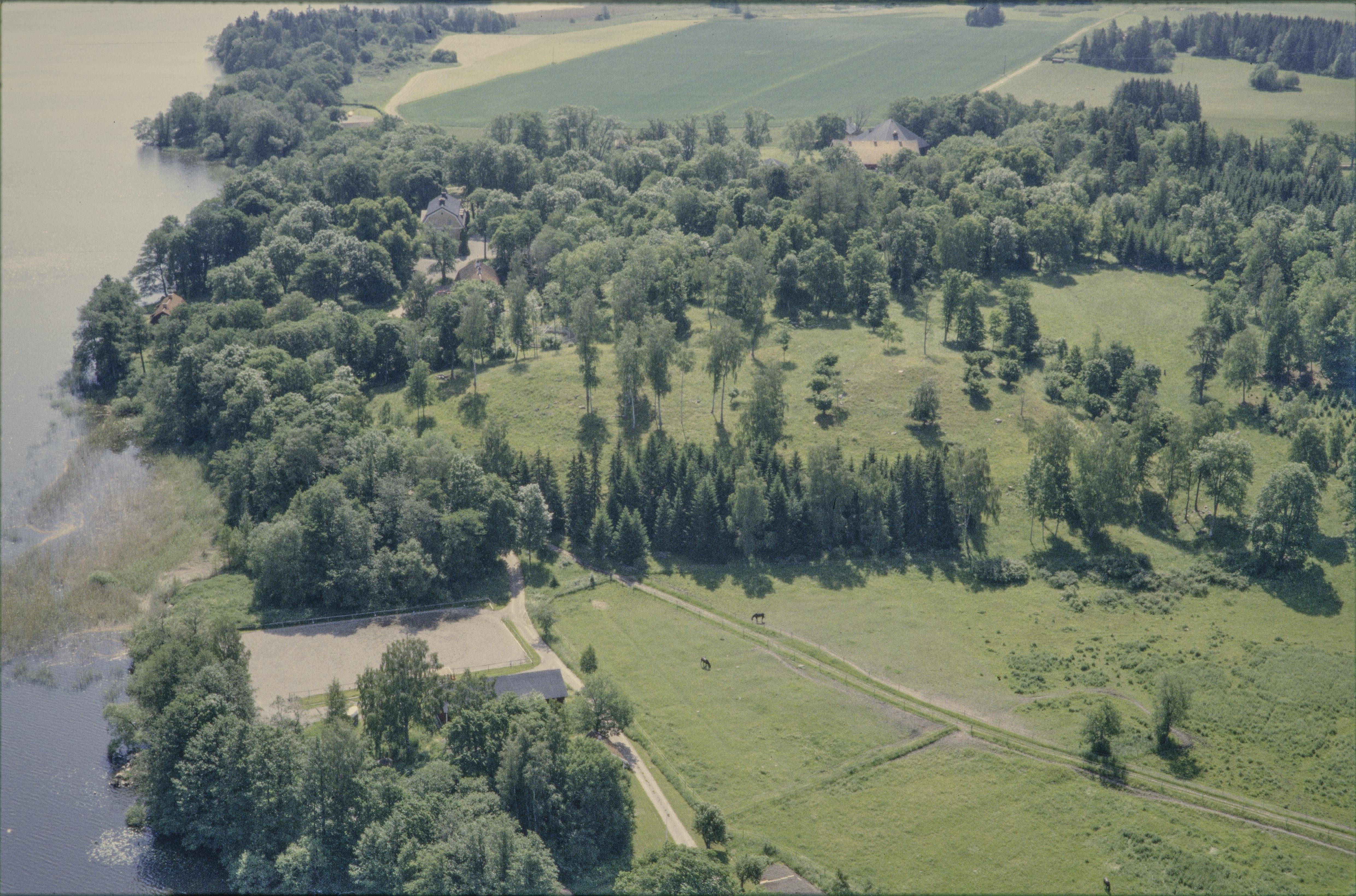 Beskrivning: Signhildsbergs kungsgård vid Håtunaviken i Mälaren. I området husgrund Fornsigtuna RAÄnr Håtuna 101:1, gravfält Håtuna 99:1 m.fl. Vid bildens mitt tegelindustri Håtuna 122:1. Bilden är tagen mot (väderstreck): SO