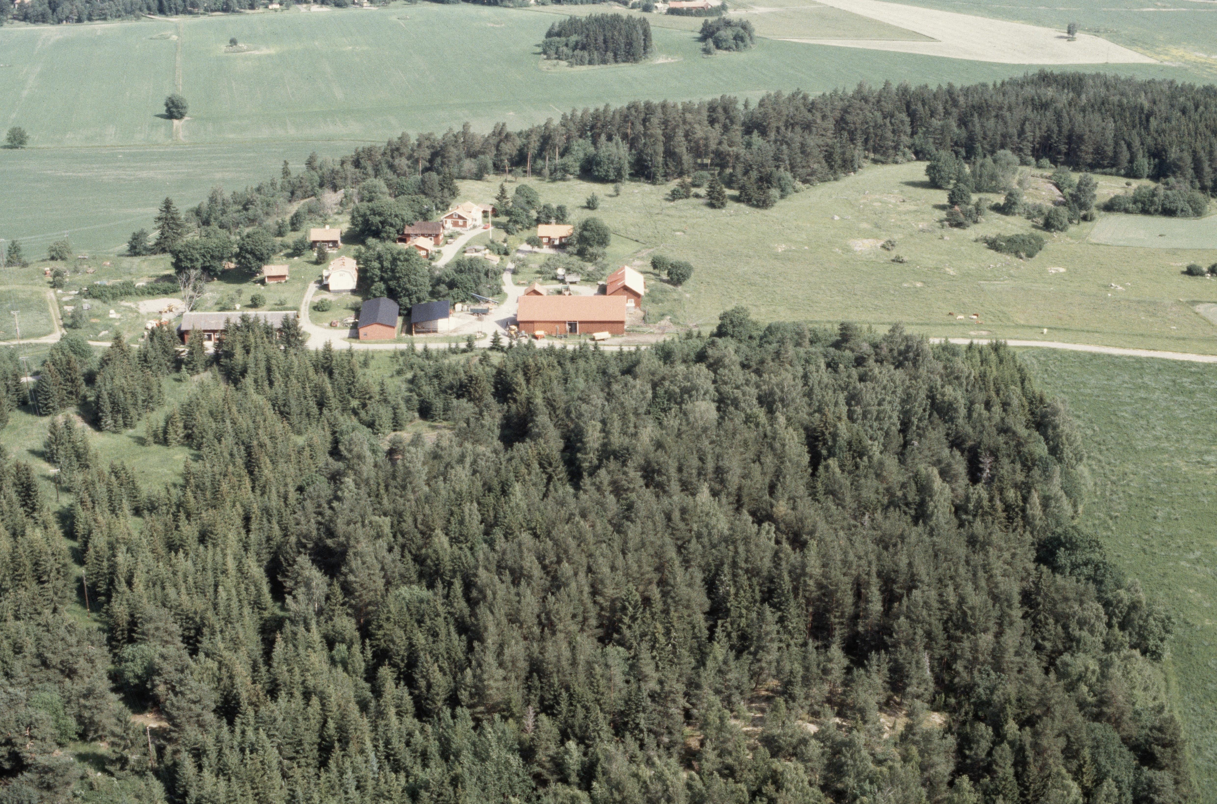Beskrivning: Skälby gård. I bildens övre del gravfält RAÄnr Kungsängen 34:1 och i bildens nedre del gravfält Kungsängen 36:1. Bilden är tagen mot (väderstreck): N