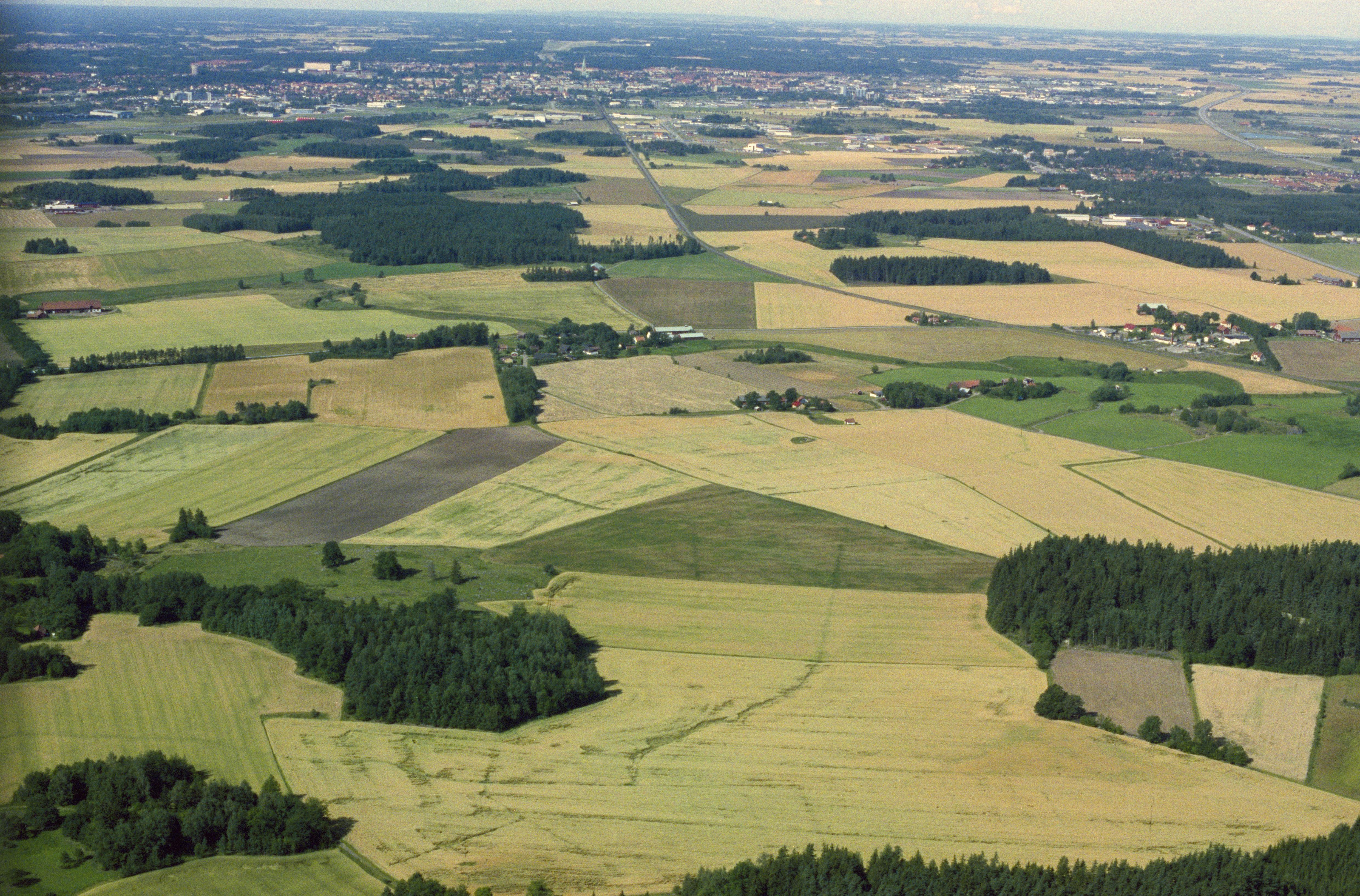 Beskrivning: Gravfält RAÄnr Vårdsberg 101:1 nere till höger. I bildens övre del socknet Rystad och staden Linköping. Bilden är tagen mot (väderstreck): SV