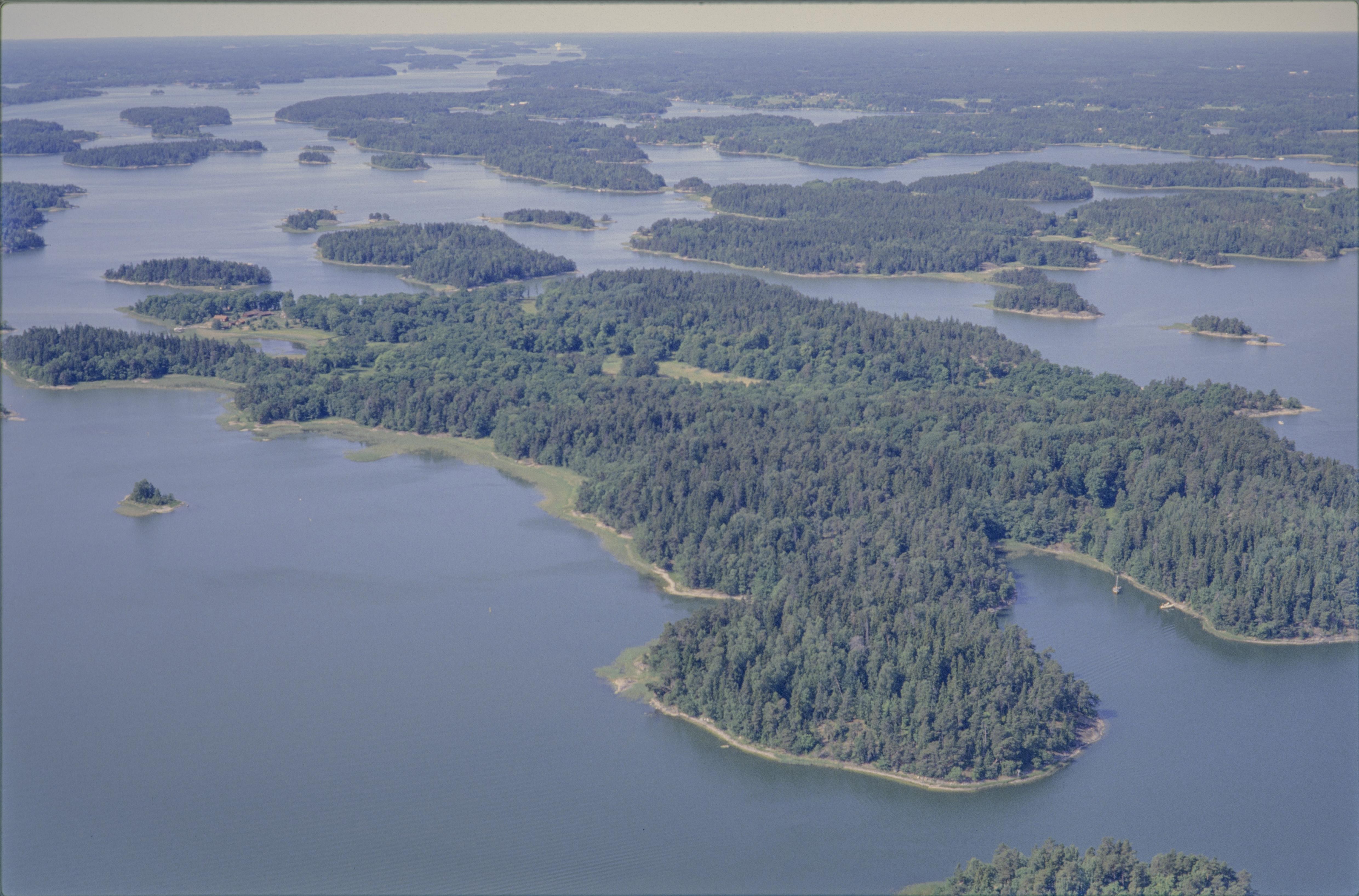Beskrivning: Ön Ängsö / Ängsö nationalpark i Roslagens innerskärgård. Bilden är tagen mot (väderstreck): VSV